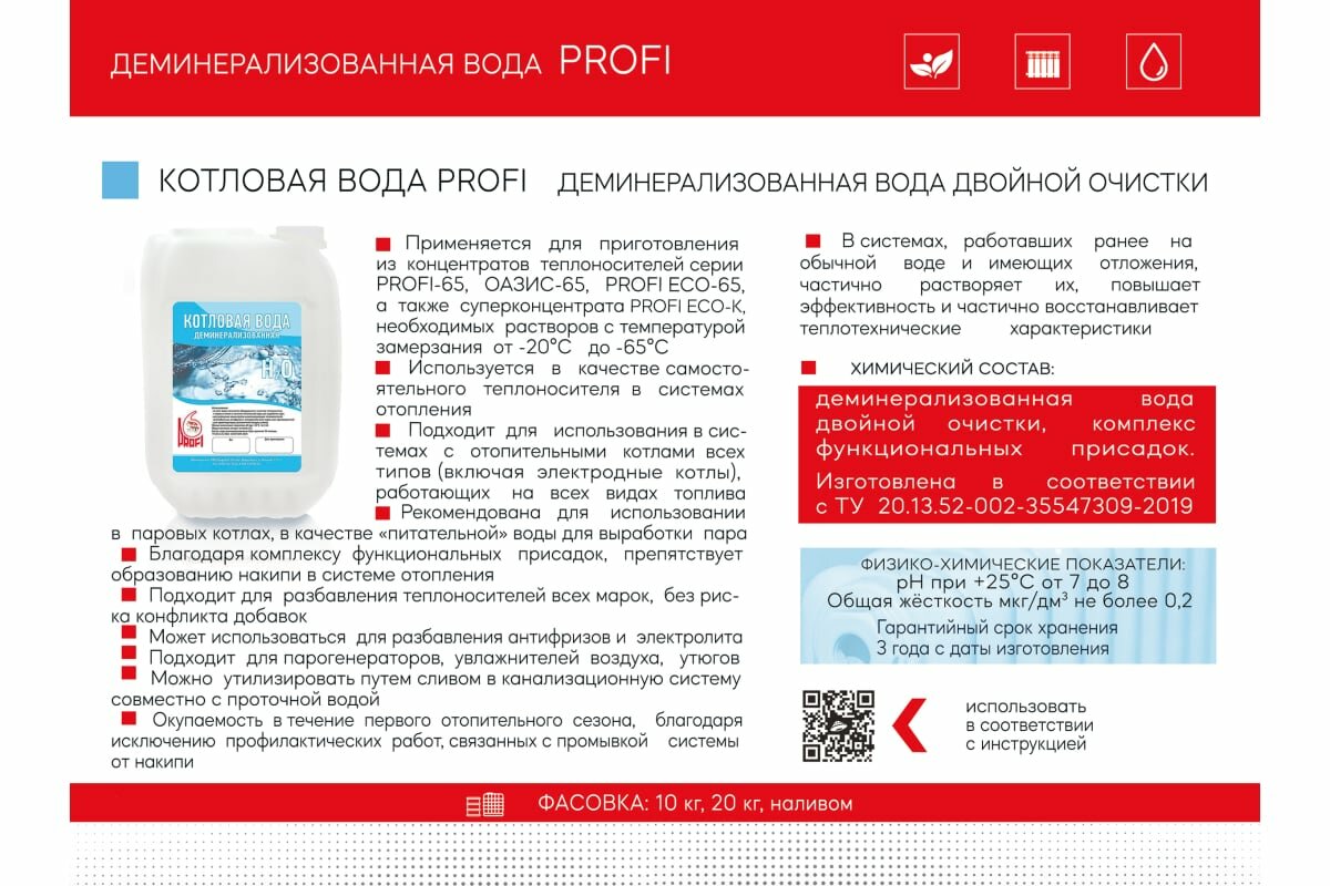 10 цен на Profi вода котловая деминерализованная, двойной очистки, в канистре 20 кг ПВК-020 .