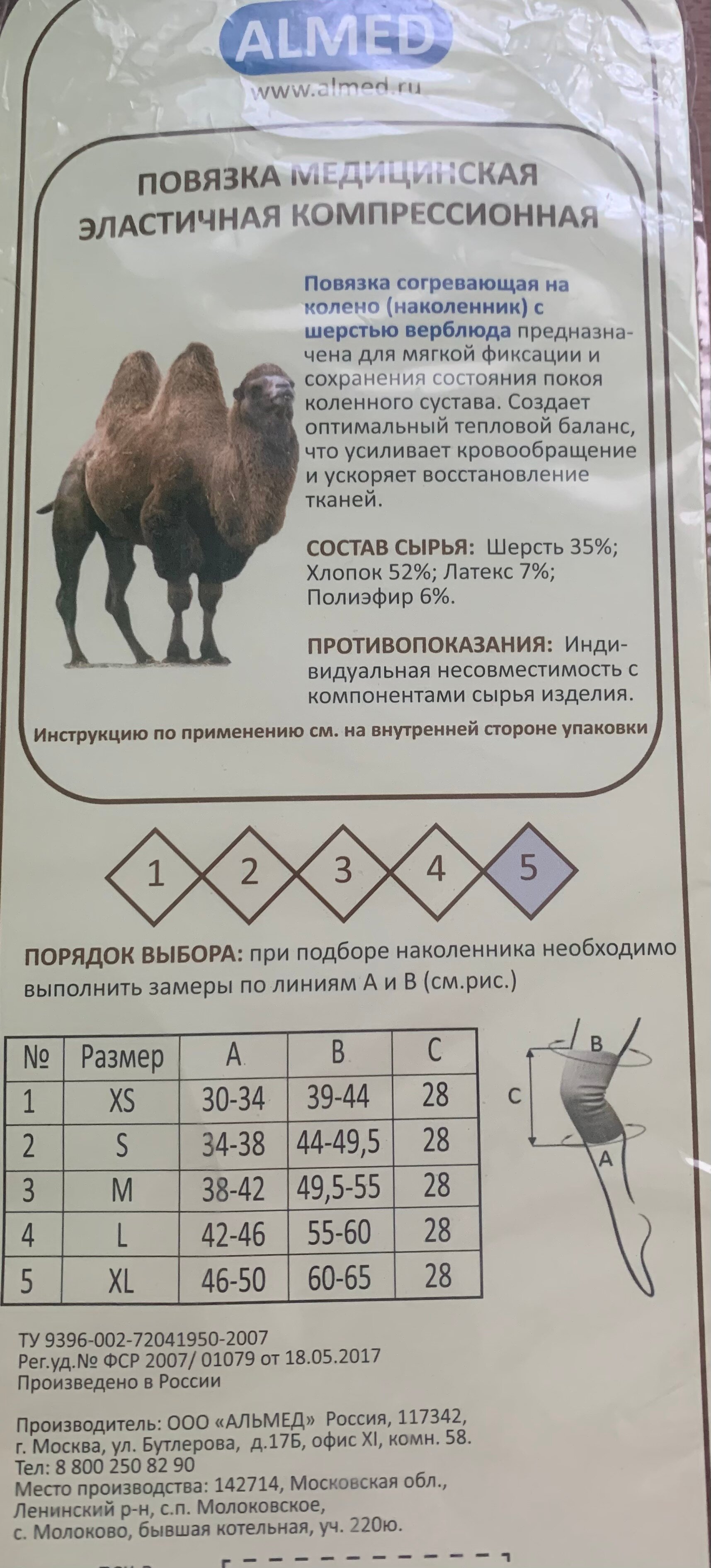 Наколенник эласт. согревающий с шерстью верблюда №5 информация:
