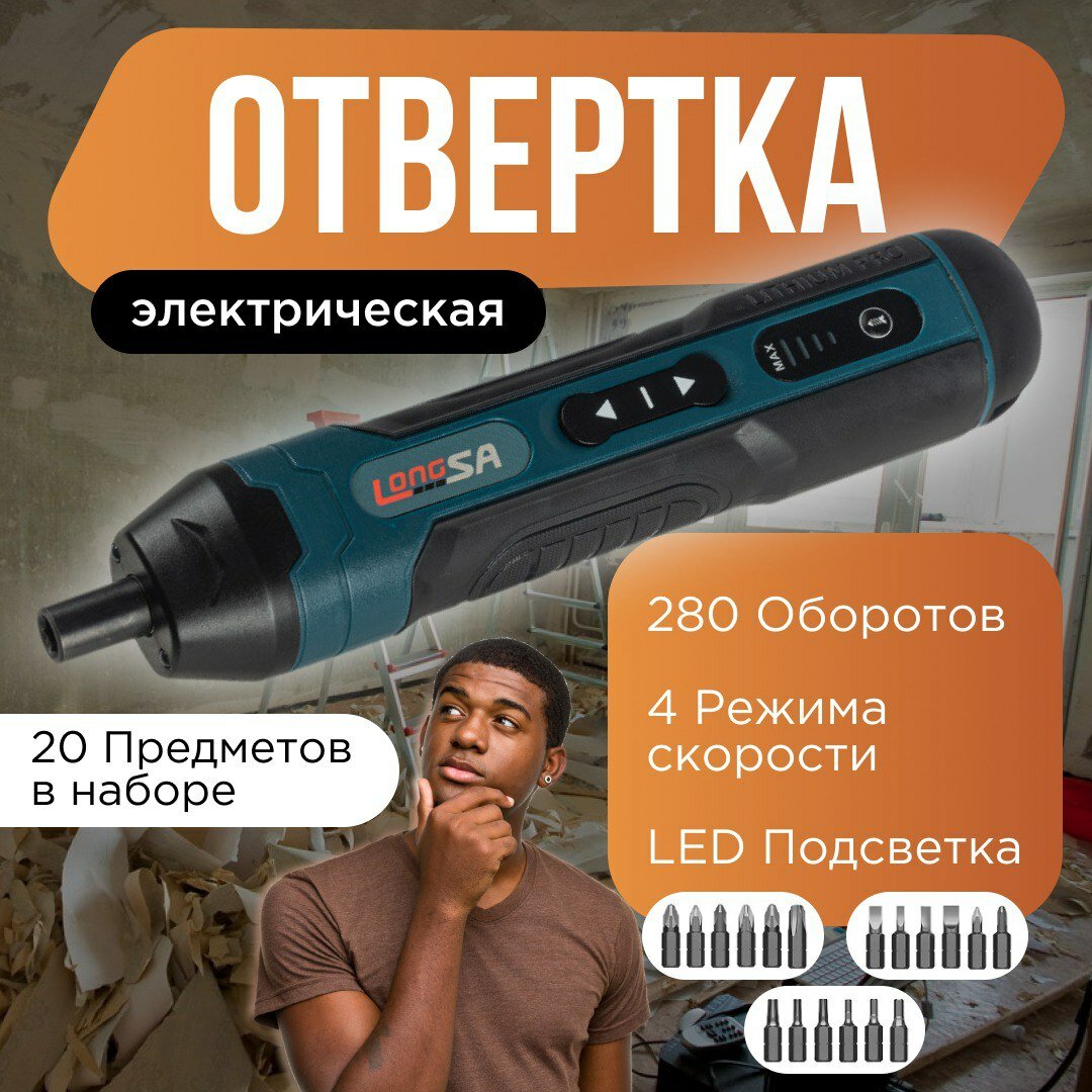 Отвертка аккумуляторная с подсветкой / электроотвертка/ электрическая отвертка/ набор бит с магнитным наконечником 20 в 1/shopping White информация: