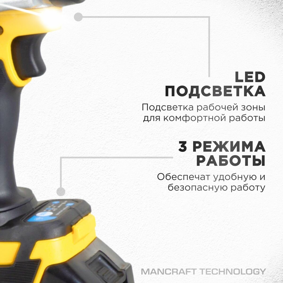 10 цен на Гайковерт аккумуляторный ударный бесщеточный мощный MANCRAFT 700 Нм с 2 акк по 4 Ah с Biturbo двигателем.