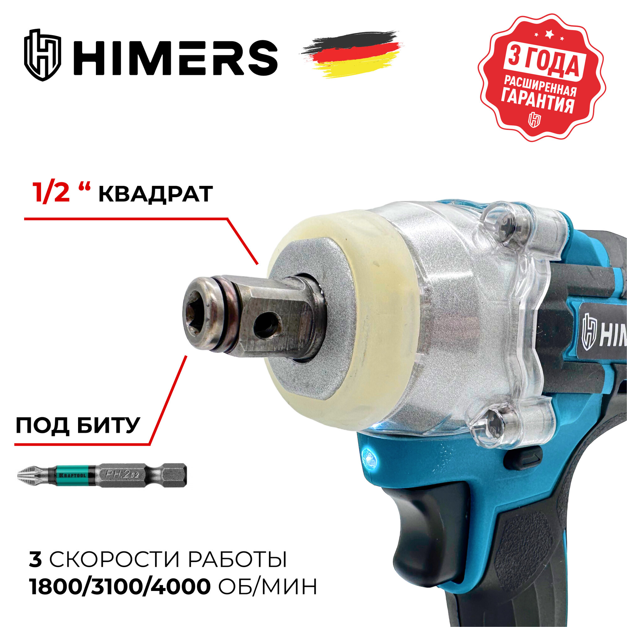 750 Н.М. Ударный гайковерт HIMERS MT750B с рукоятью , сетевой 220V / Кейс / для закручивания, квадрат 1/2 13 000 ₽