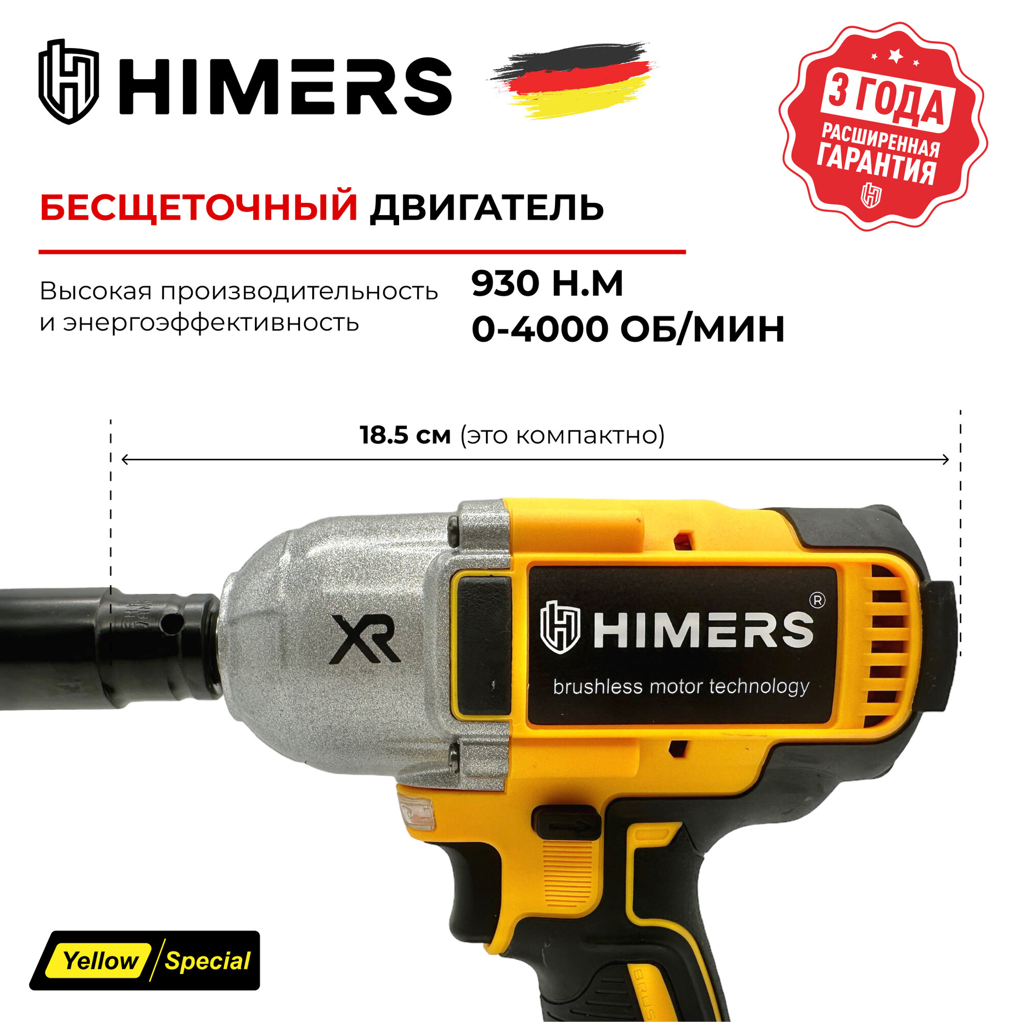 10 цен на 930 Н.М. Ударный бесщеточный гайковерт HIMERS DMT930Y аккумуляторный 24V, 2 АКБ по 6 А.ч., Версия Yellow special / Кейс / для закручивания 24в винтоверт