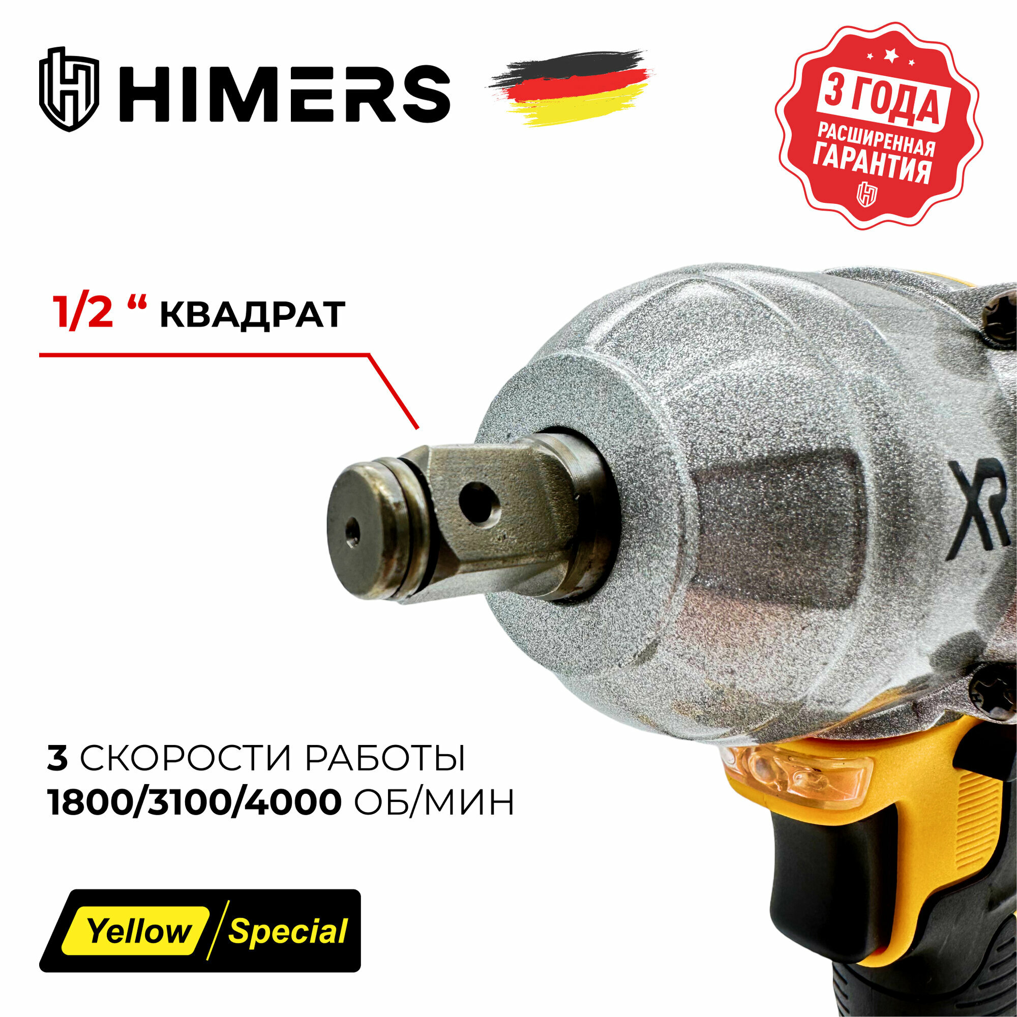 930 Н.М. Ударный бесщеточный гайковерт HIMERS DMT930Y аккумуляторный 24V, 2 АКБ по 6 А.ч., Версия Yellow special / Кейс / для закручивания 24в винтоверт информация: