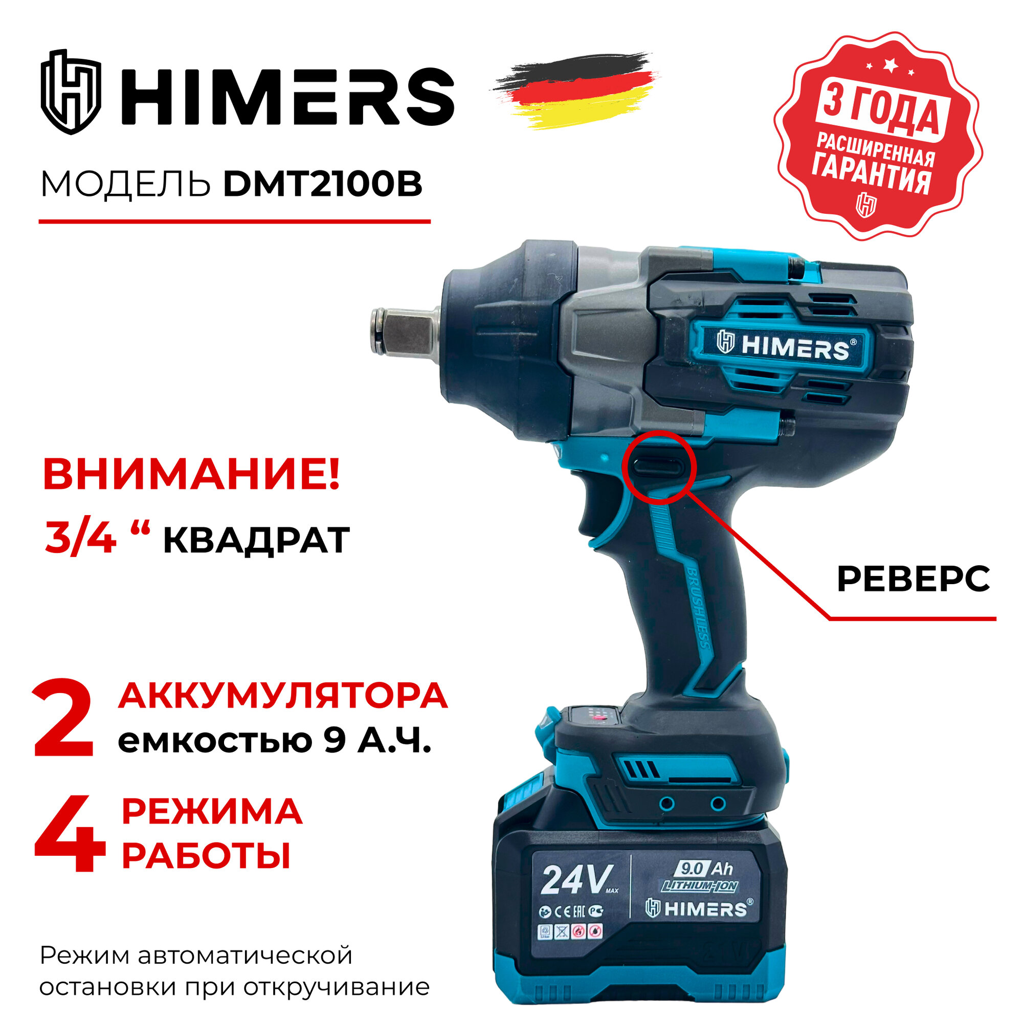 10 цен на 2100 Н.М. Ударный бесщеточный гайковерт HIMERS DMT2100B аккумуляторный 24V, 2 АКБ по 9 А.ч., / Кейс / для закручивания, 24в, внимание! квадрат 3/4, очень мощный