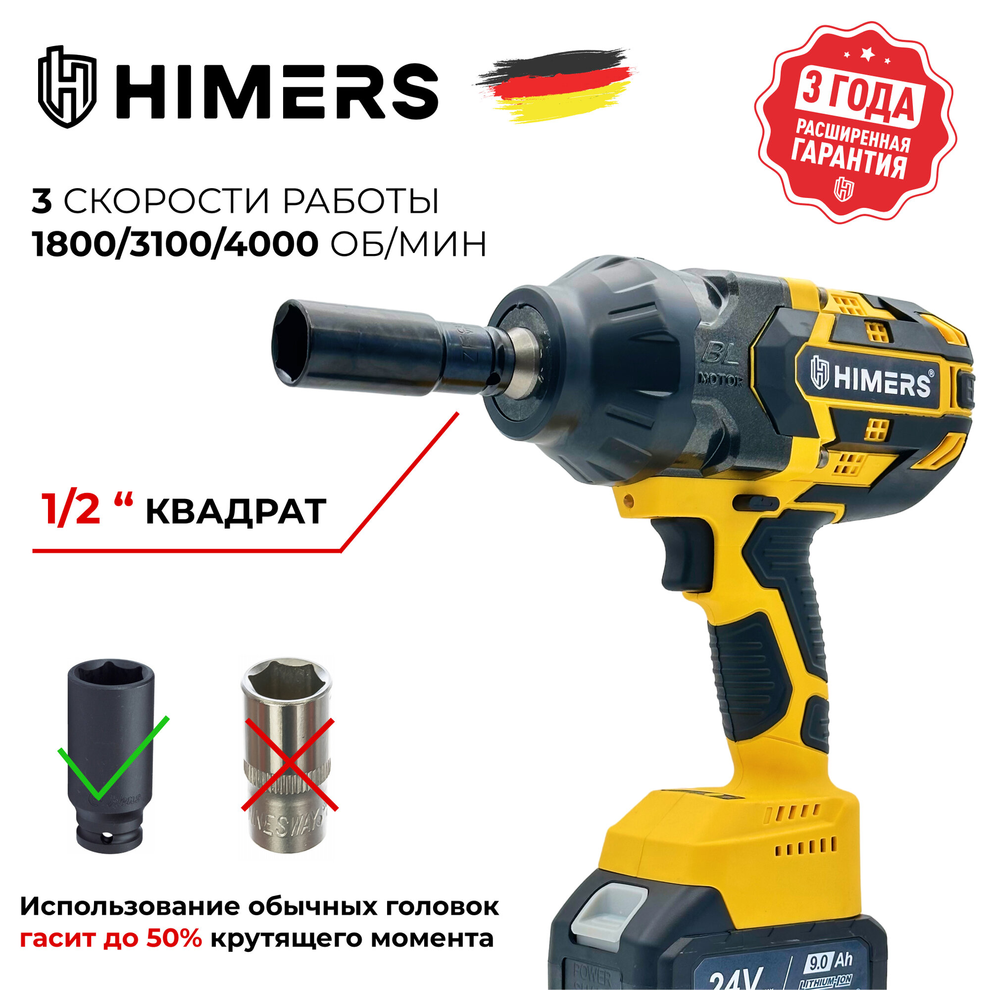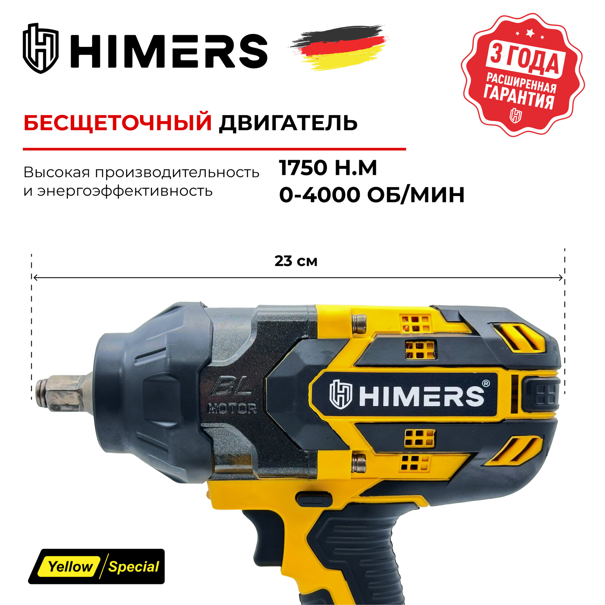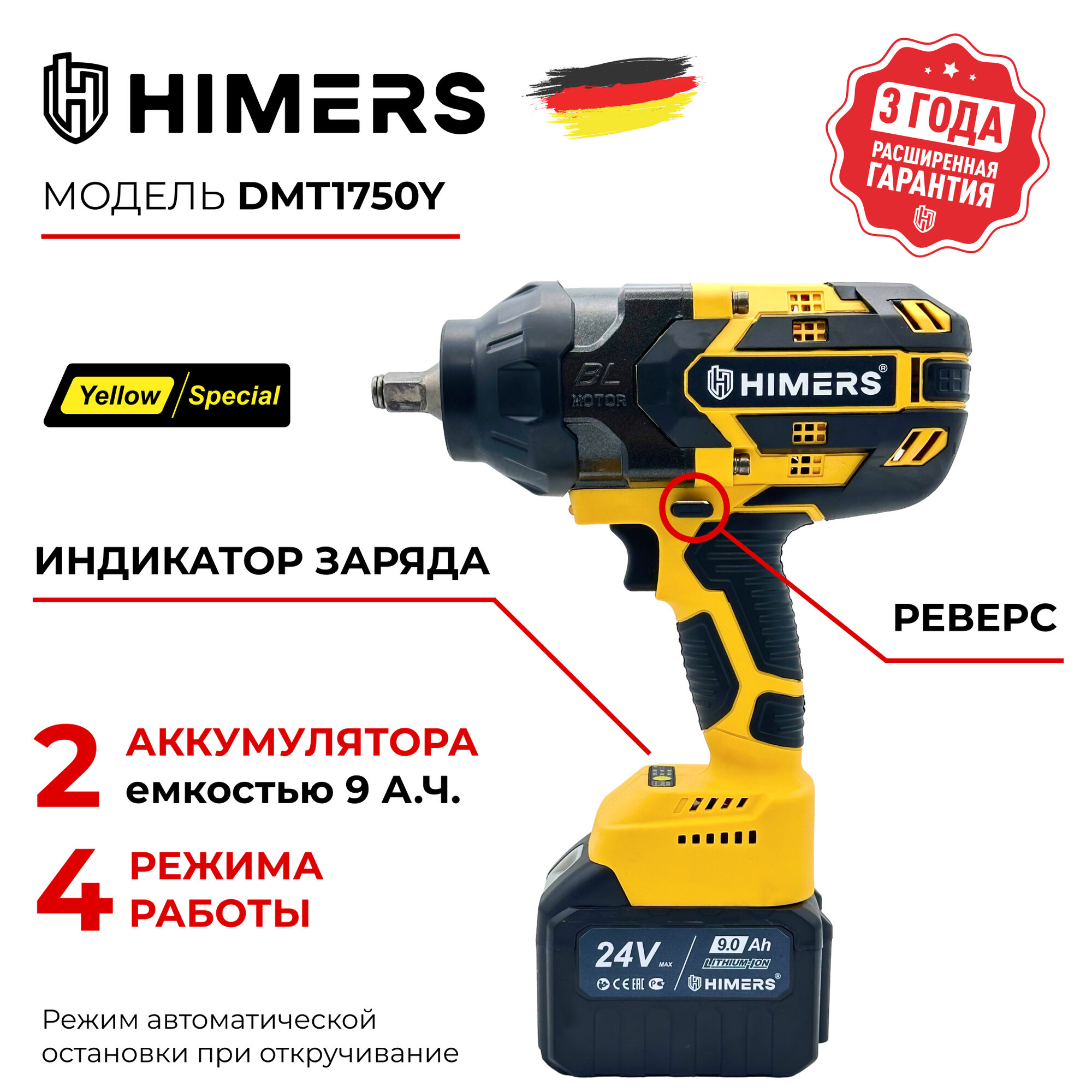 10 цен на 1750 Н.М. Ударный бесщеточный гайковерт HIMERS DMT1750Y аккумуляторный 24V, 2 АКБ по 9 А.ч., 1750 Н.м., Версия Yellow special / Кейс / для закручивания, 24в, квадрат 1/2 очень мощный