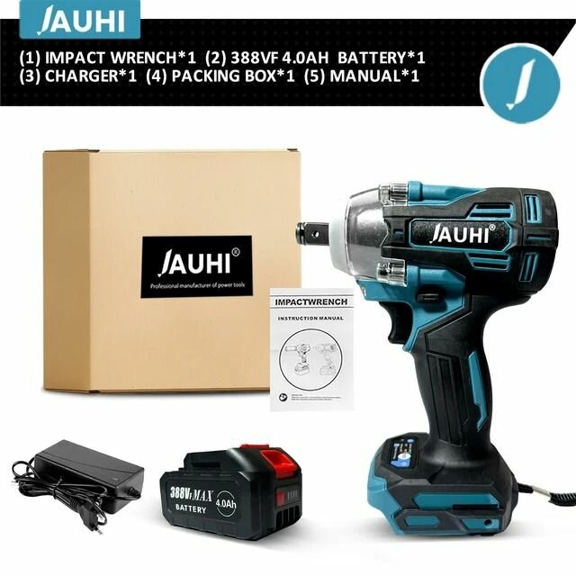 10 цен на Гайковерт аккумуляторный ударный бесщеточный JAUHI Мощный гайковерт 18В 1 АКБ 4000мАч 388vf