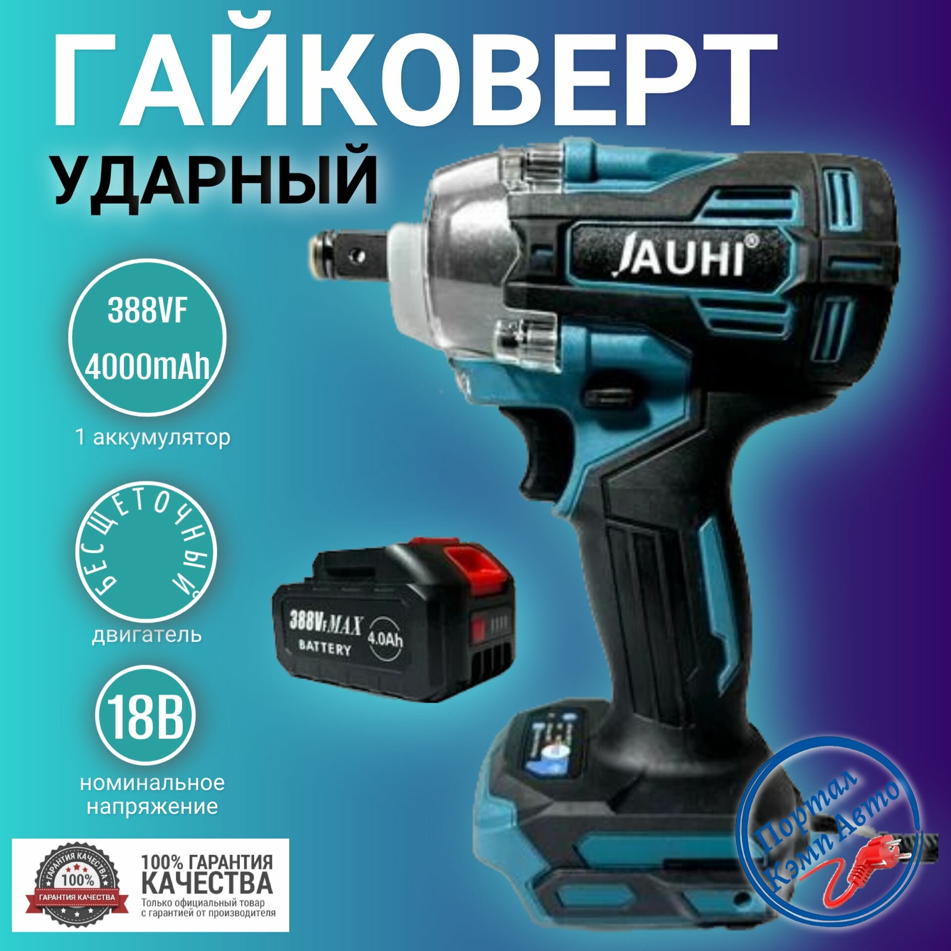 Гайковерт аккумуляторный ударный бесщеточный JAUHI Мощный гайковерт 18В 1 АКБ 4000мАч 388vf информация: