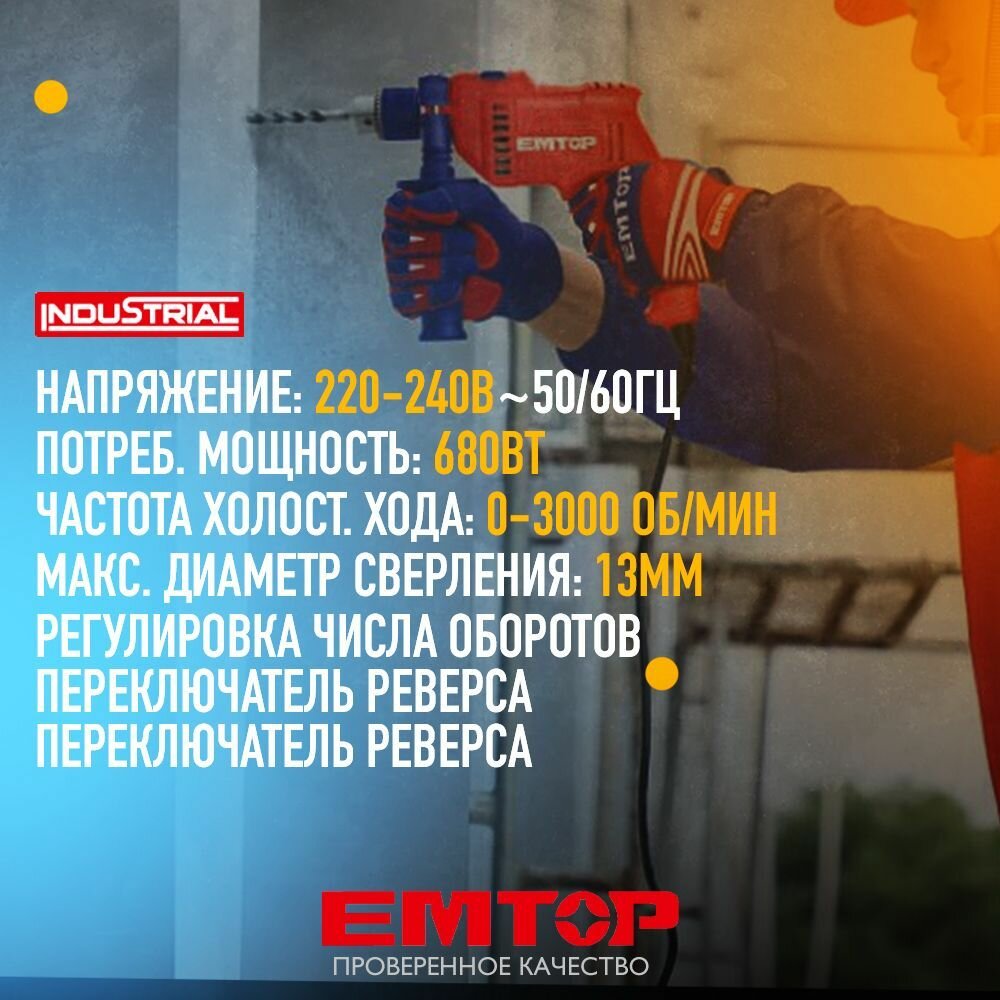 Отзывы на Электрическая ударная дрель 680 Вт, (коробка) 300 0об/мин дополнительная рукоять + шкала глубины сверления