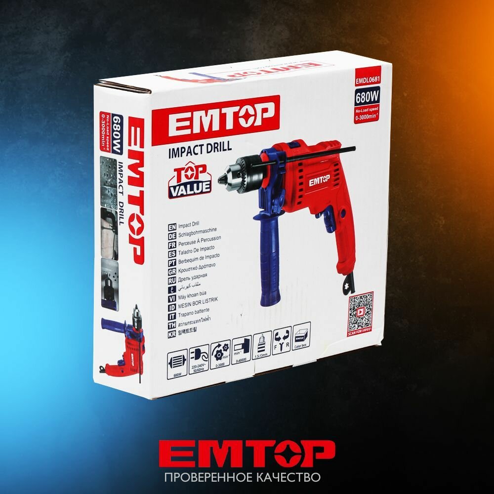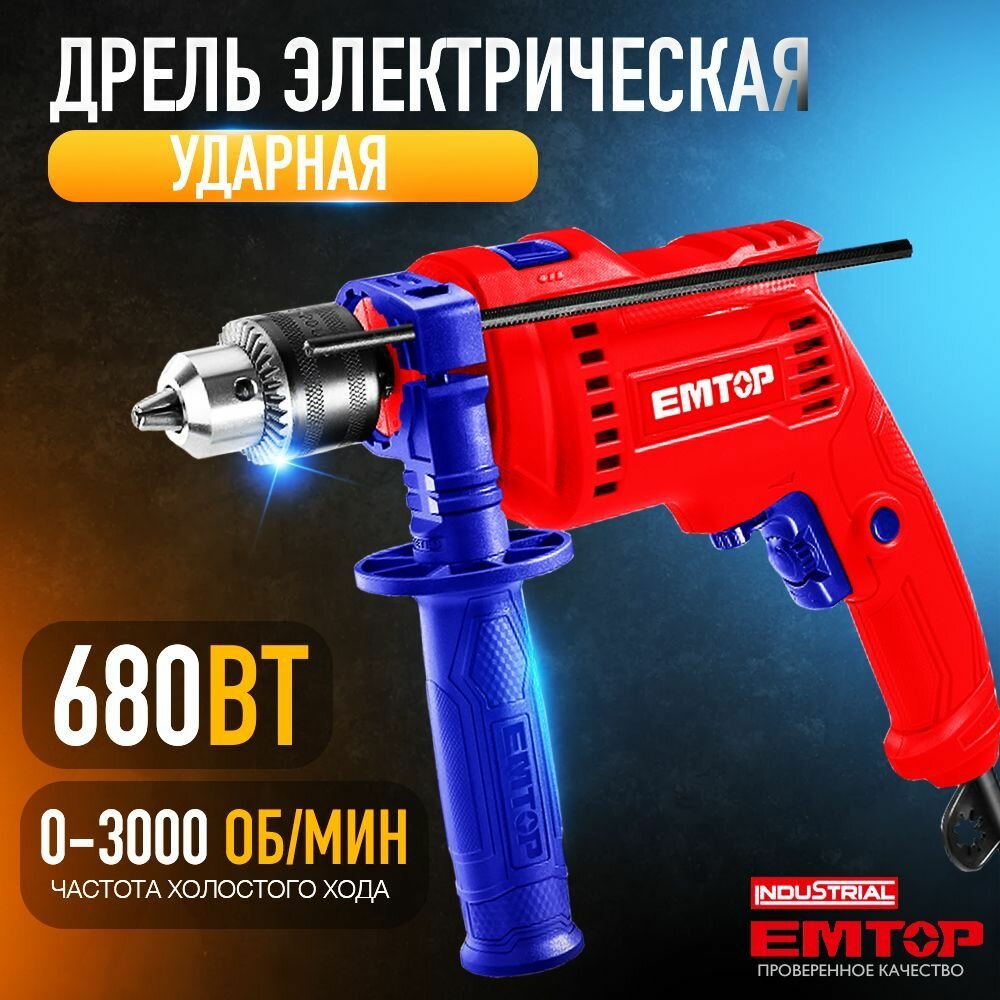 10 цен на Электрическая ударная дрель 680 Вт, (коробка) 300 0об/мин дополнительная рукоять + шкала глубины сверления