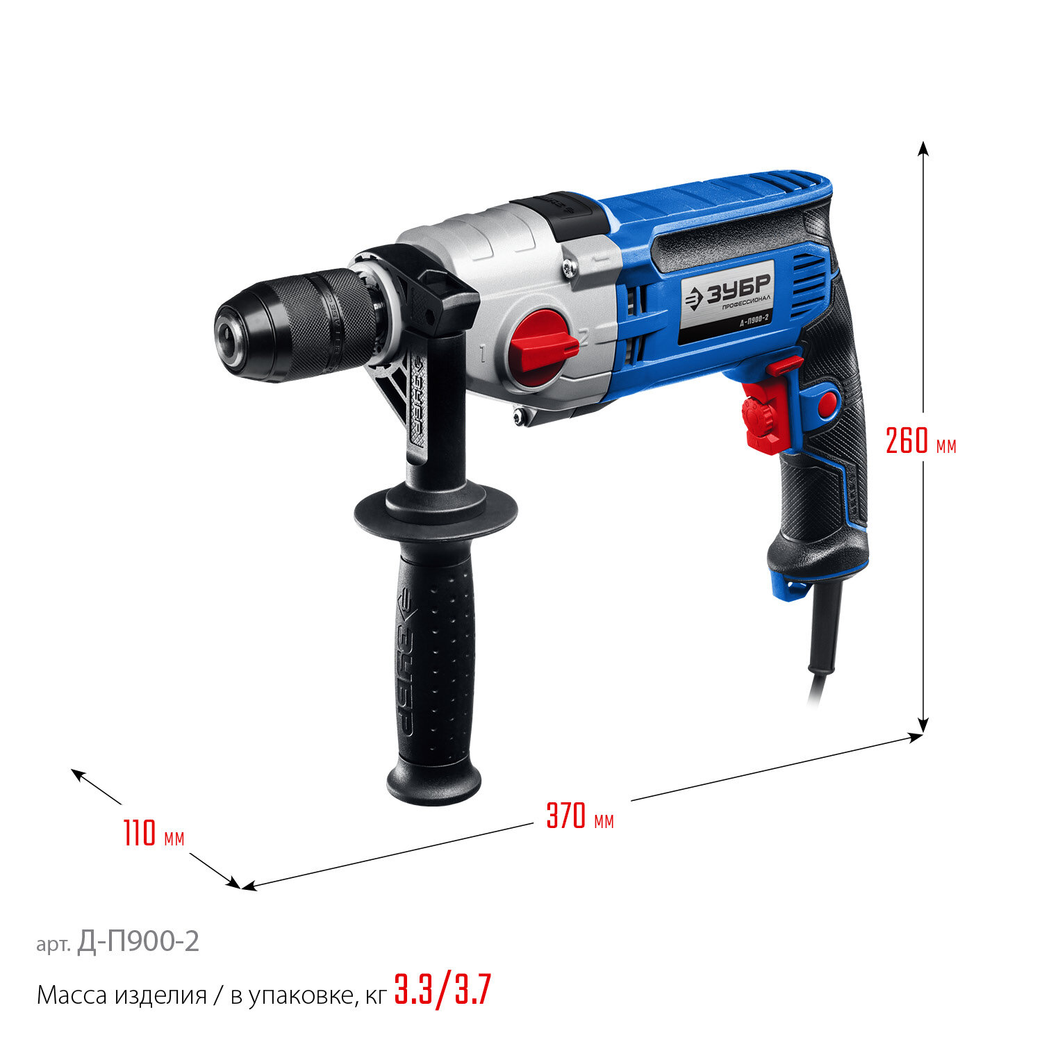 ЗУБР 900 Вт, дрель безударная Д-П900-2 Профессионал