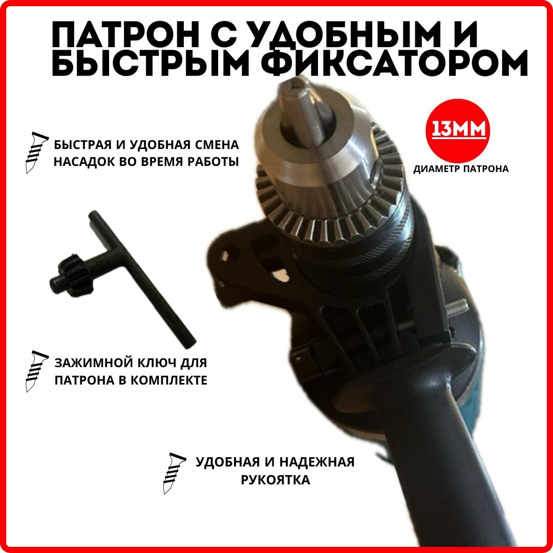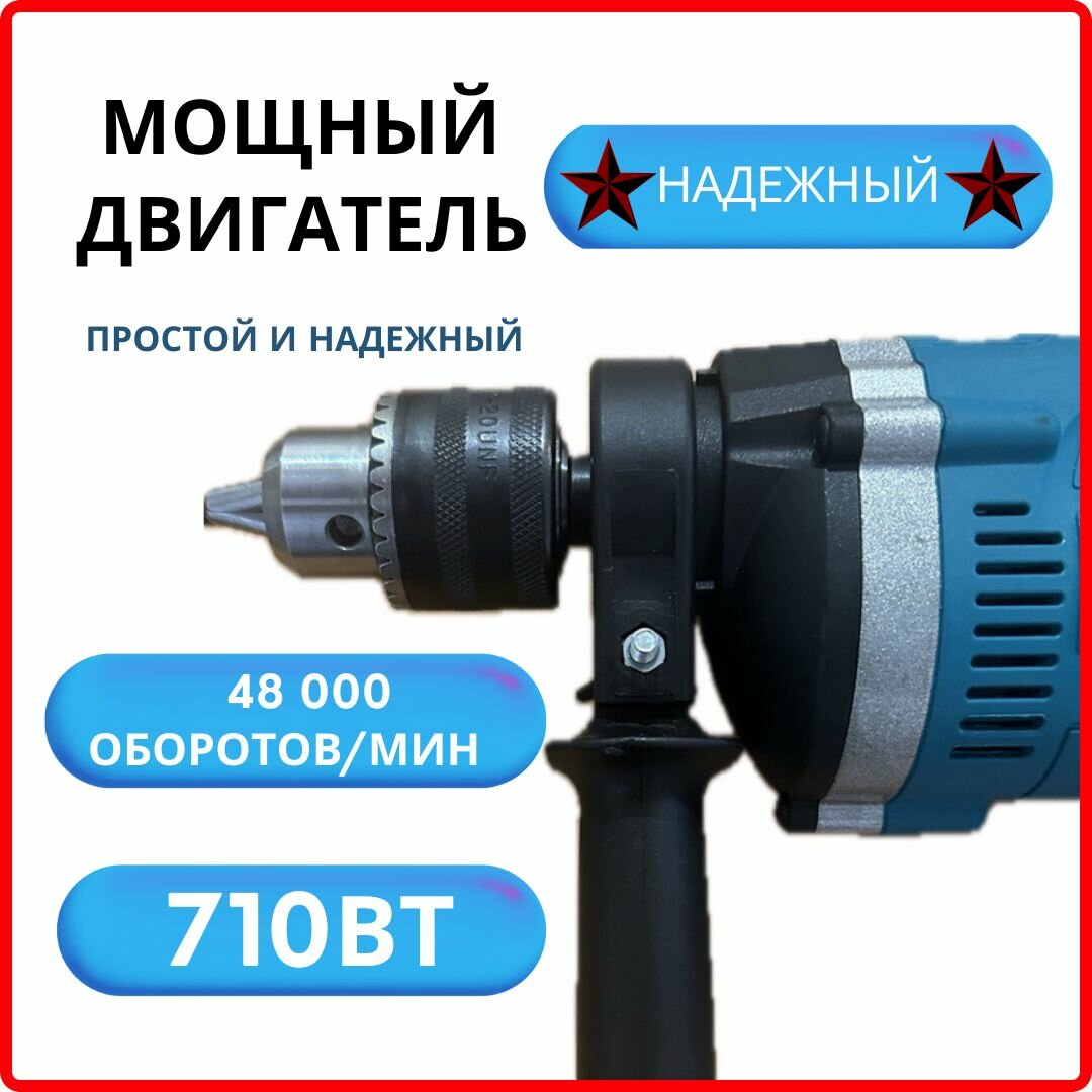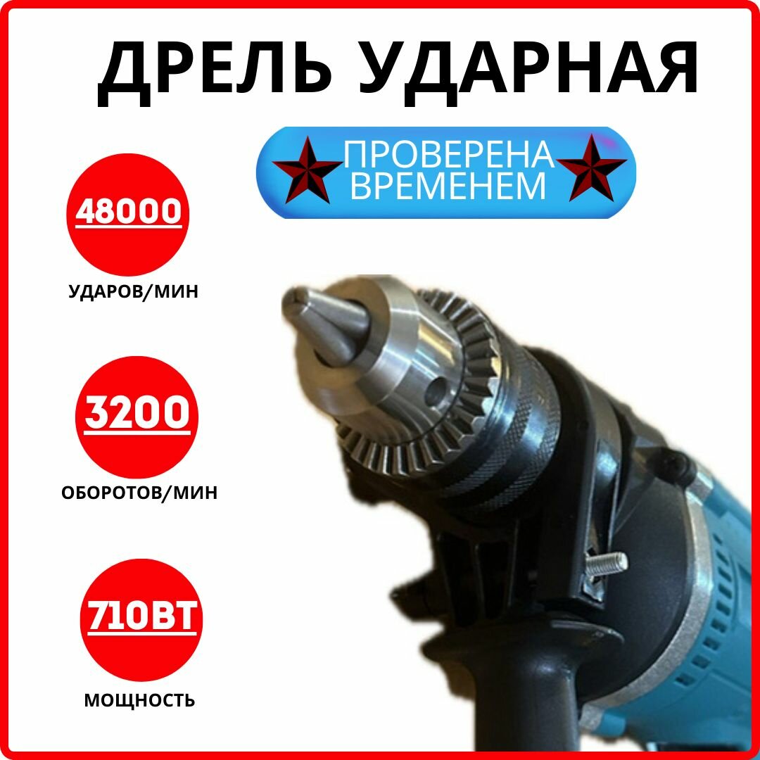 Дрель ударная сетевая электрическая HP1630/электродрель 710 Вт, 3200 об. мин, 48000 уд. мин/ударная дрель ручная от сети