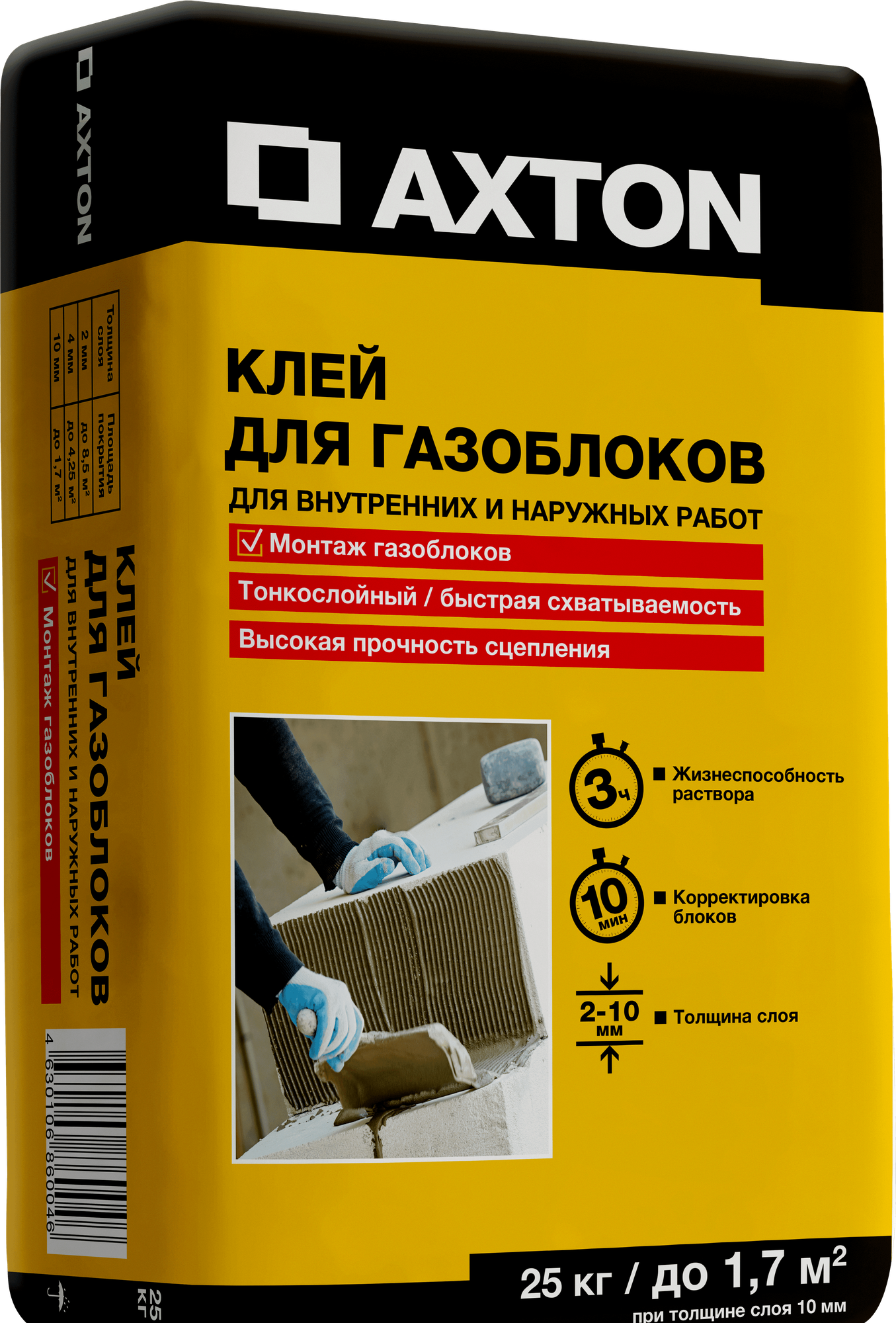 Акстон клей для блоков быстросхватывающий (25кг) / AXTON клей для газоблоков для внутренних и наружных работ тонкослойный (25кг) информация: