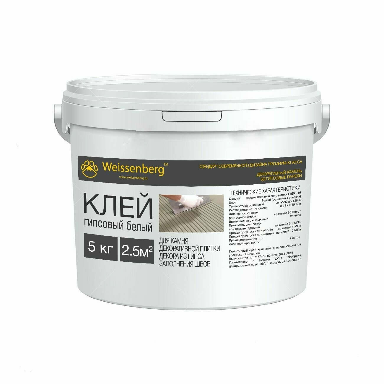 Монтажный клей гипсовый Weissenberg 5кг, белый информация: