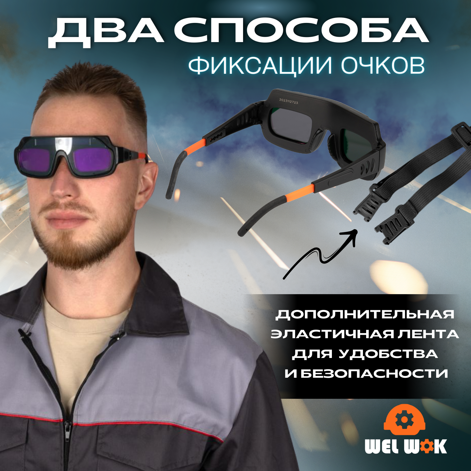 Сварочные очки хамелеон DIN 3 - DIN 11, задержка 0.1с, с поясом на шею и резиновой прокладкой для головы