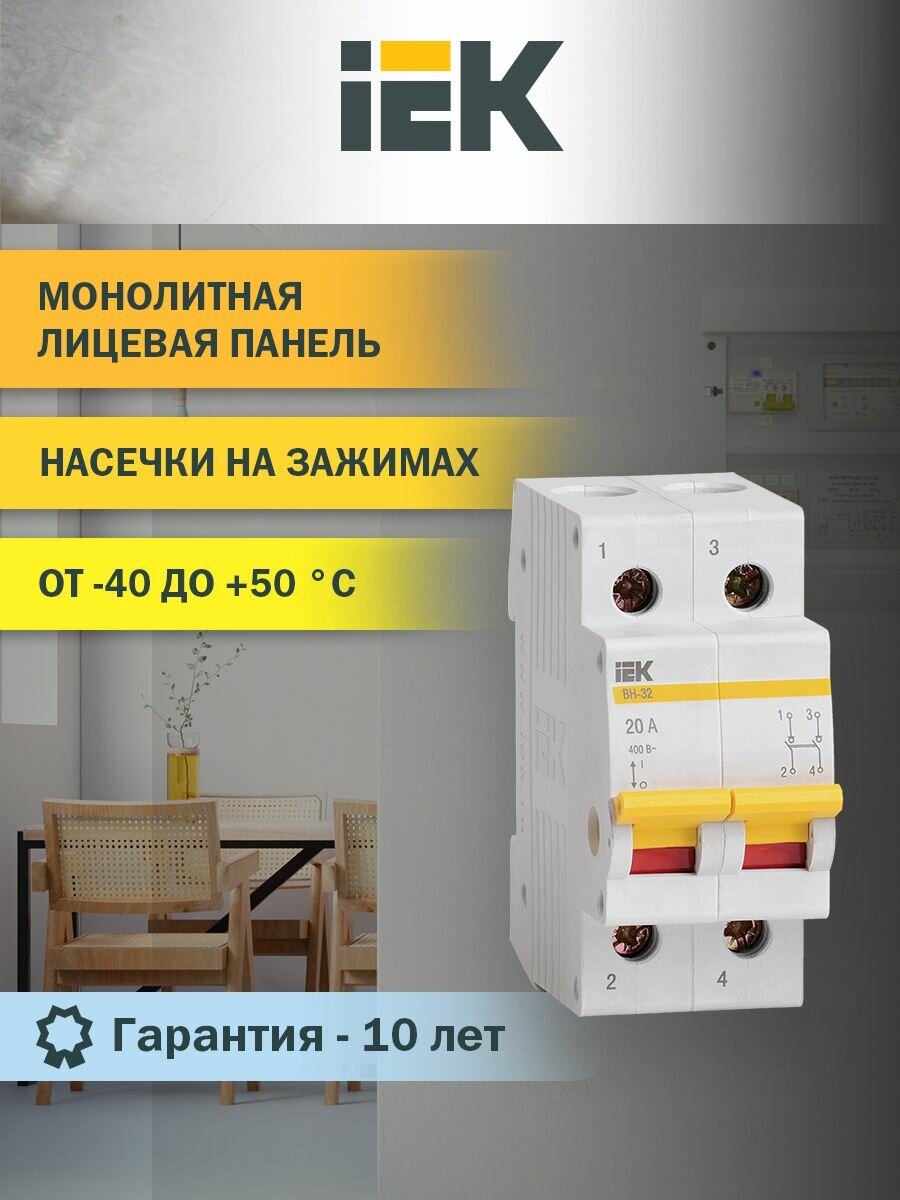 Выключатель нагрузки (мини-рубильник) Iek ВН-32 2Р 20А, MNV10-2-020 информация: