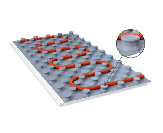 Утеплитель Пеноплекс 50х585х1185мм (уп. 4 шт) с вырубкой для труб 16 мм (шаг 13 см, 5см x 5см бобышки). Пеноплэкс для монтажа водяного теплого пола.