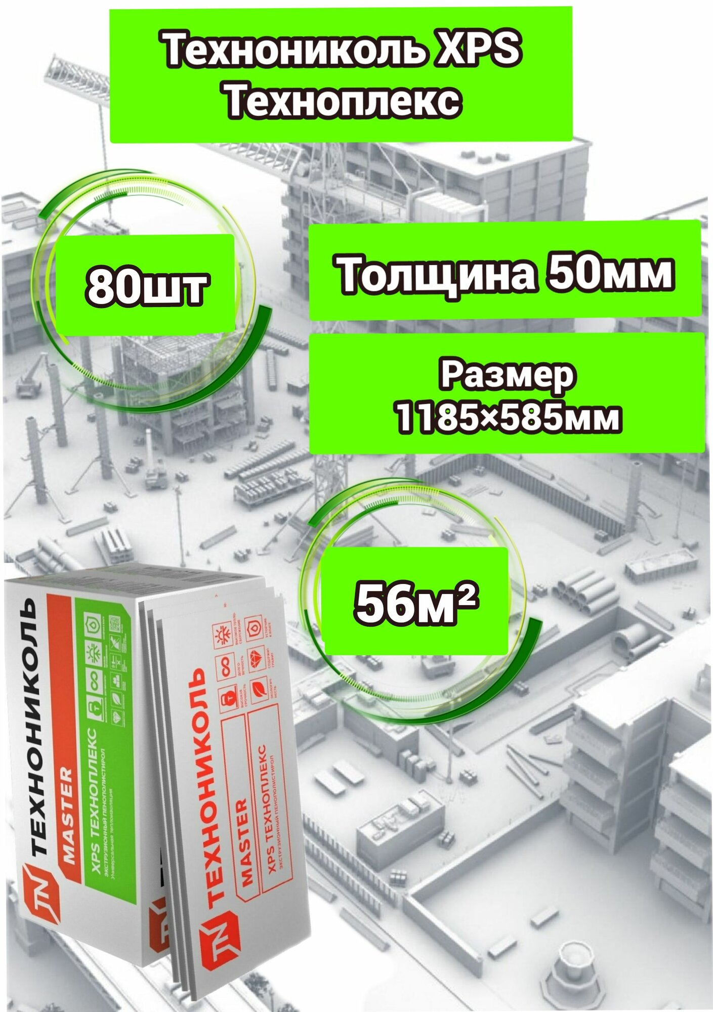 Утеплитель Технониколь Техноплекс 50 мм 80 плит 56м2 из пенополистирола для стен, крыши, пола информация: