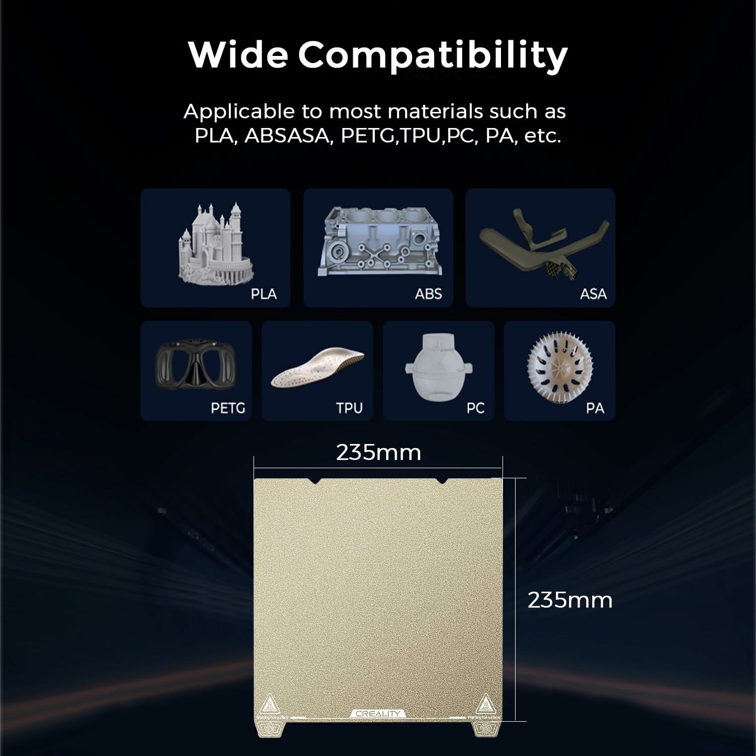 Creality Ender 3 S1 Pro, оригинальная пластина 235x235 мм, магнитная пластина с текстурой, съемный лист PEI для Ender 3 V3 SE/Ender 3 V3 KE/Ender 3 S1/Ender 3/Ender 5 S1/Ender 5 Pro, K1, CR-10 SE информация: