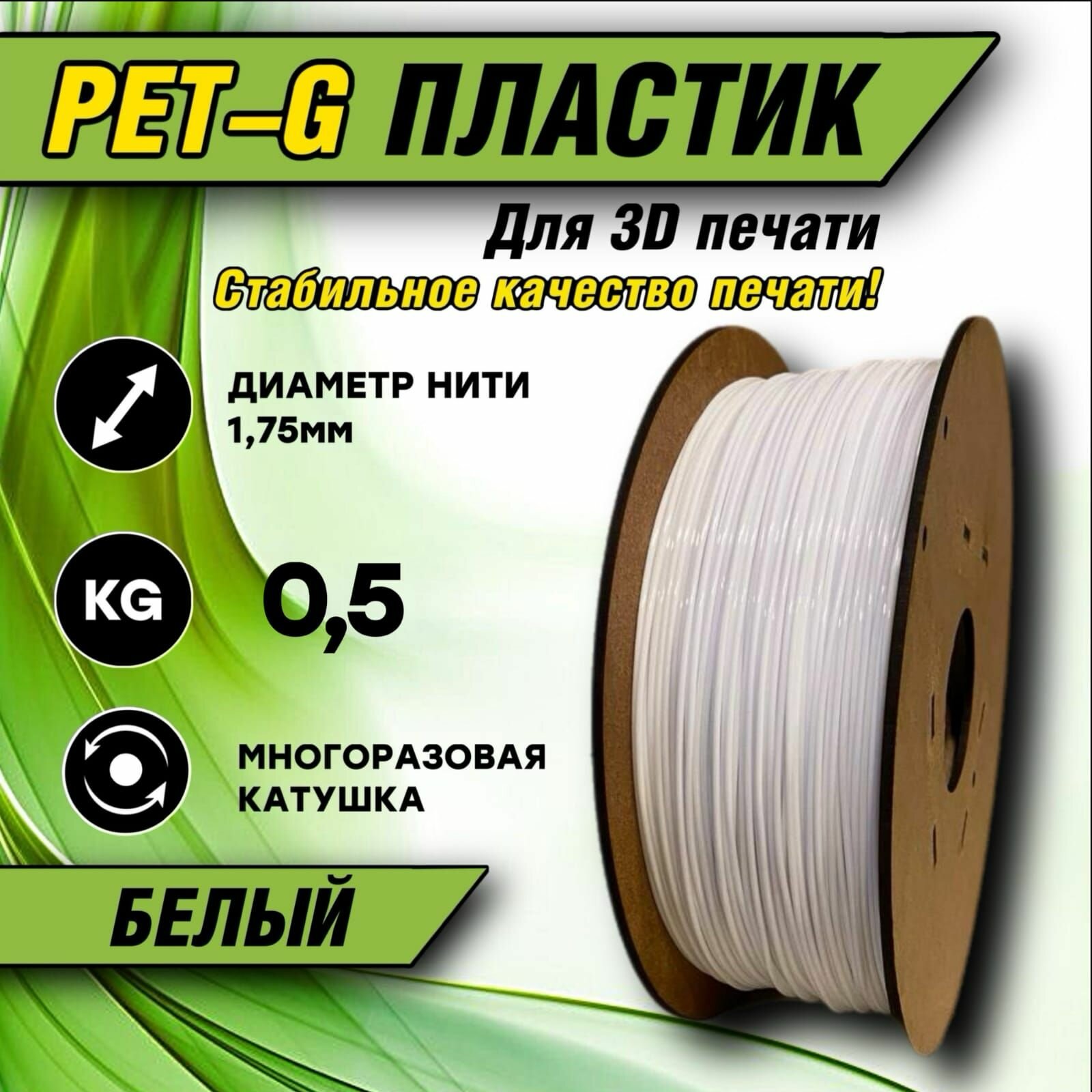 Пластик для 3d принтера PETG 1.75 "Белый", 0,5 кг. информация: