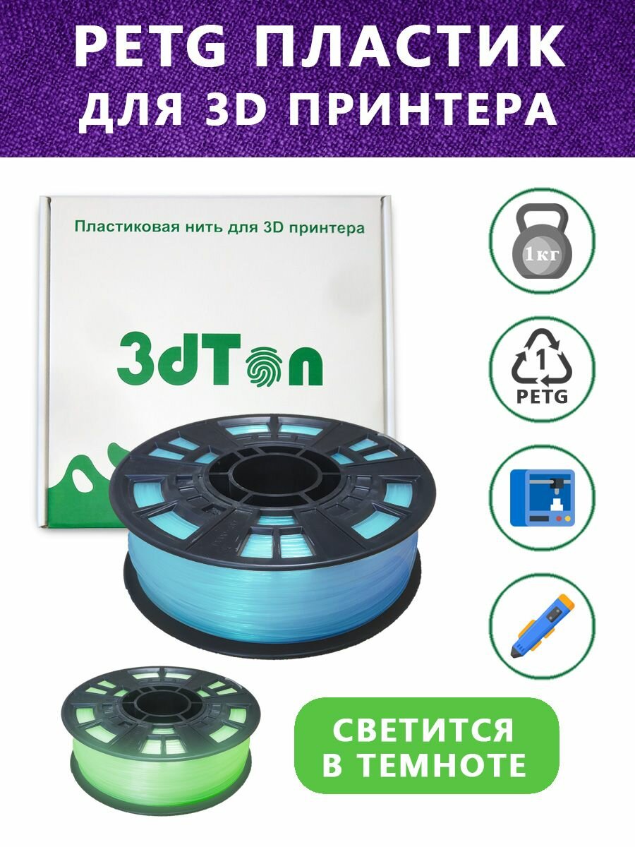 Светящийся PETG пластик для 3D принтера 1 кг, синий информация: