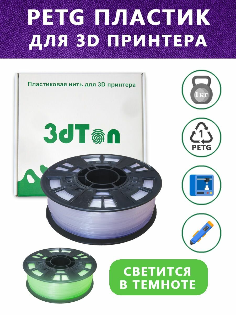 Светящийся PETG пластик для 3D принтера 1 кг, фиолетовый информация: