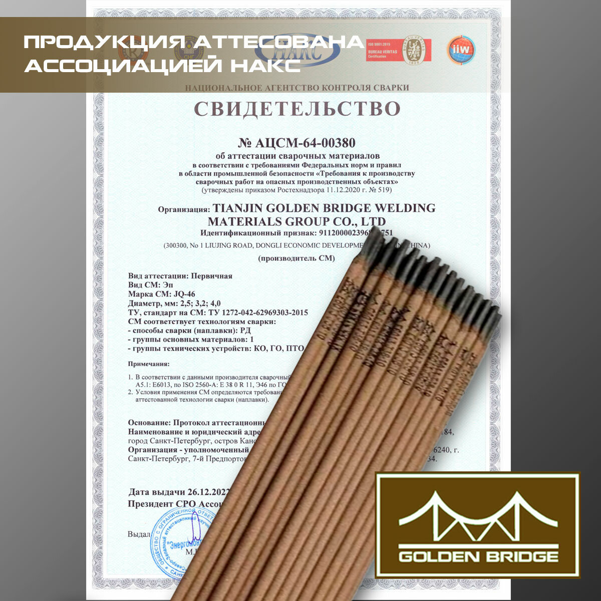 Сварочный электрод Golden Bridge JQ-46 (J38.10) 2.5х300 мм, 1 кг 693 ₽