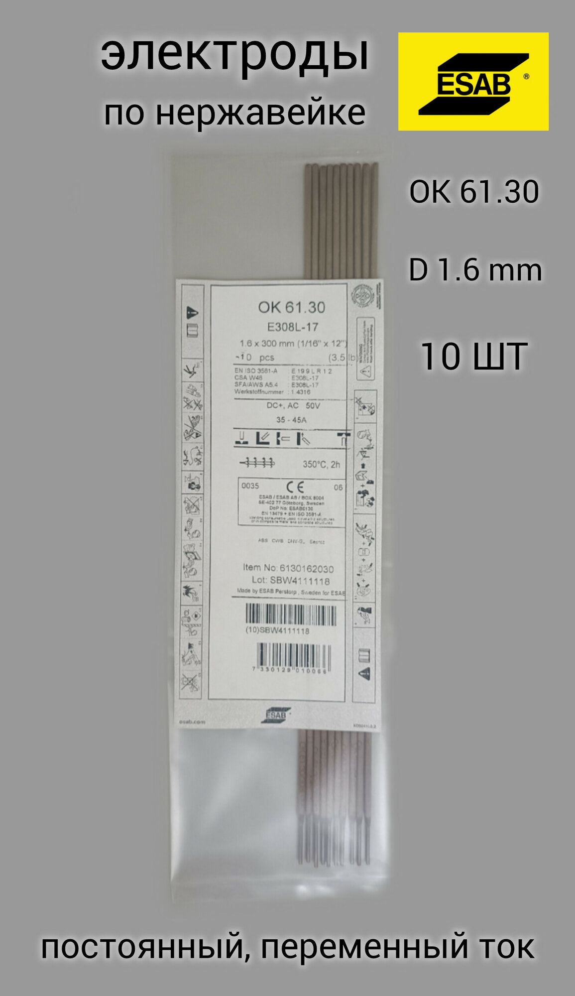 10 цен на Электроды сварочные по нержавейке ОК 61.30 (пр-ва ESAB Швеция) д.1,6мм (10 шт)