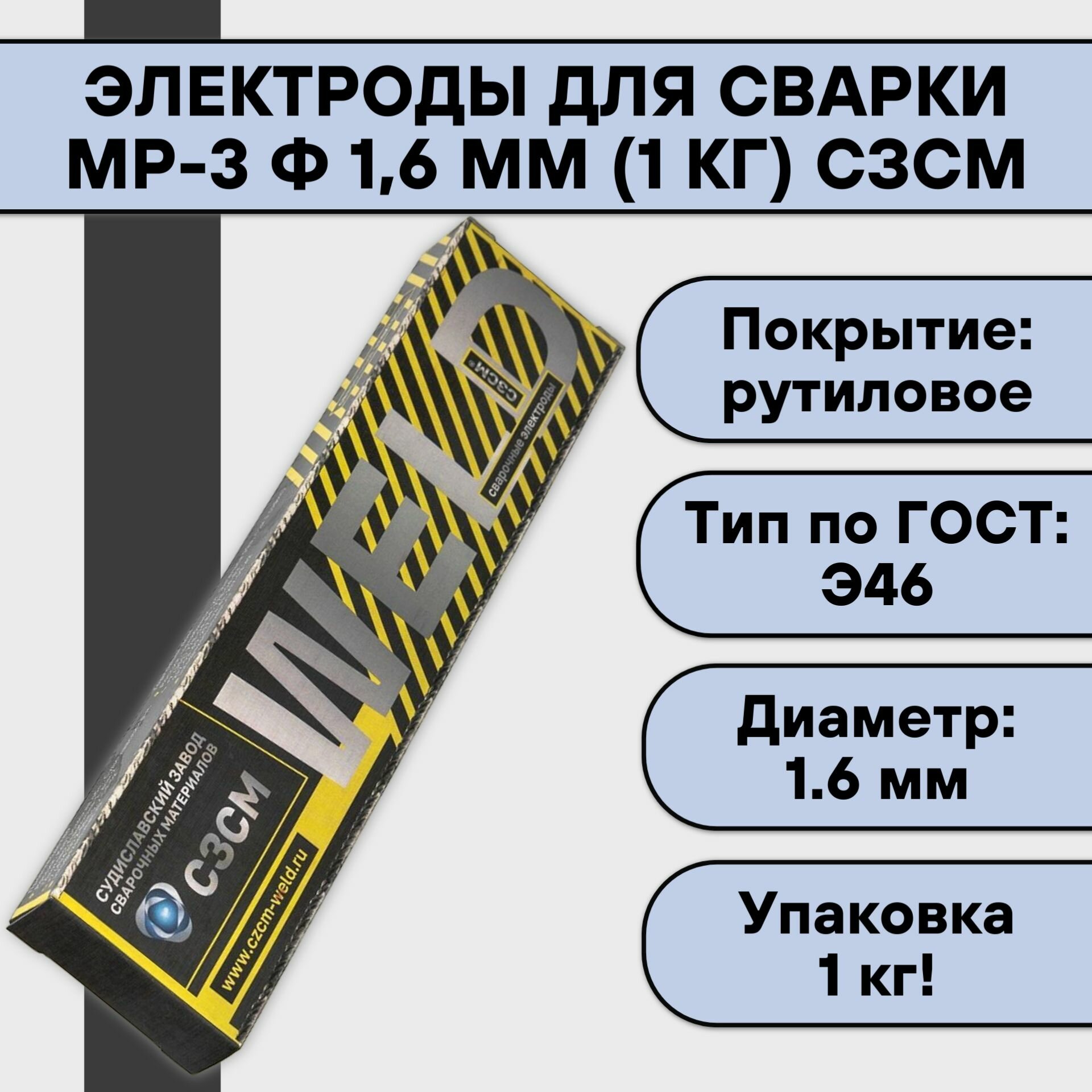 Электроды для сварки МР-3 ф 1,6 мм (1 кг) сзсм информация: