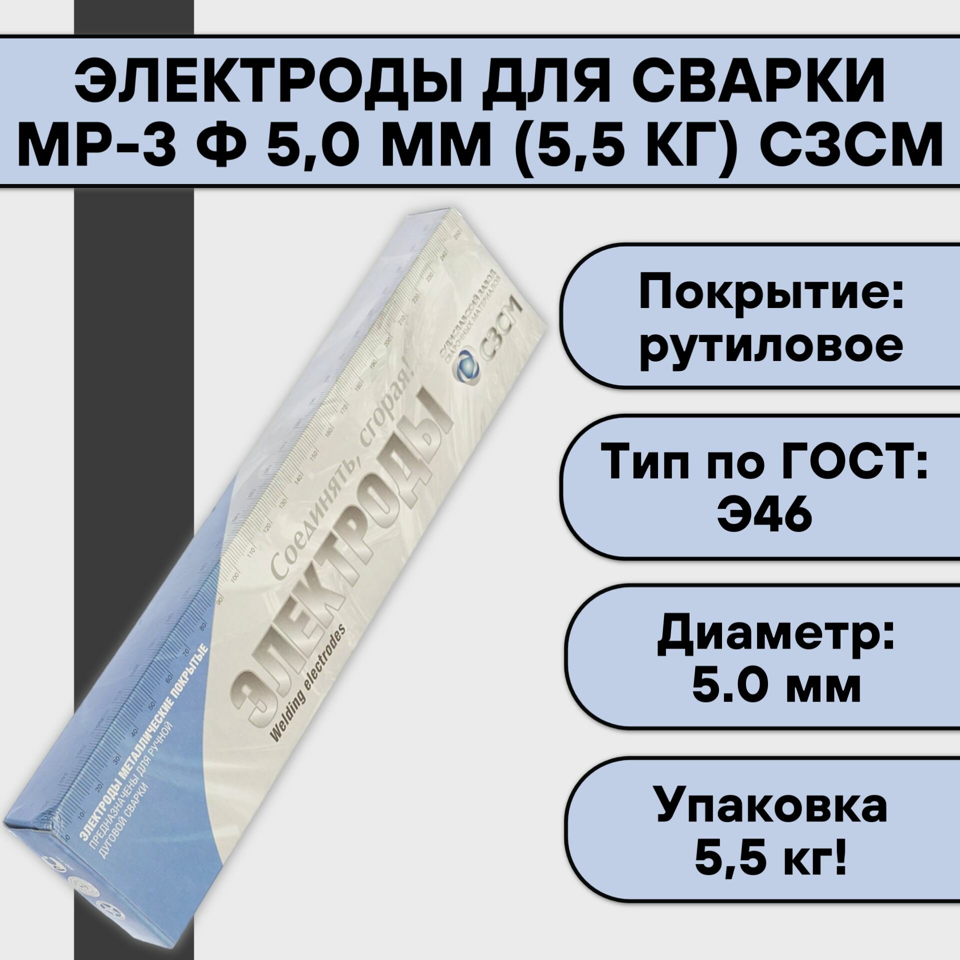 Электроды для сварки МР-3 ф 5,0 мм (5,5 кг) сзсм информация: