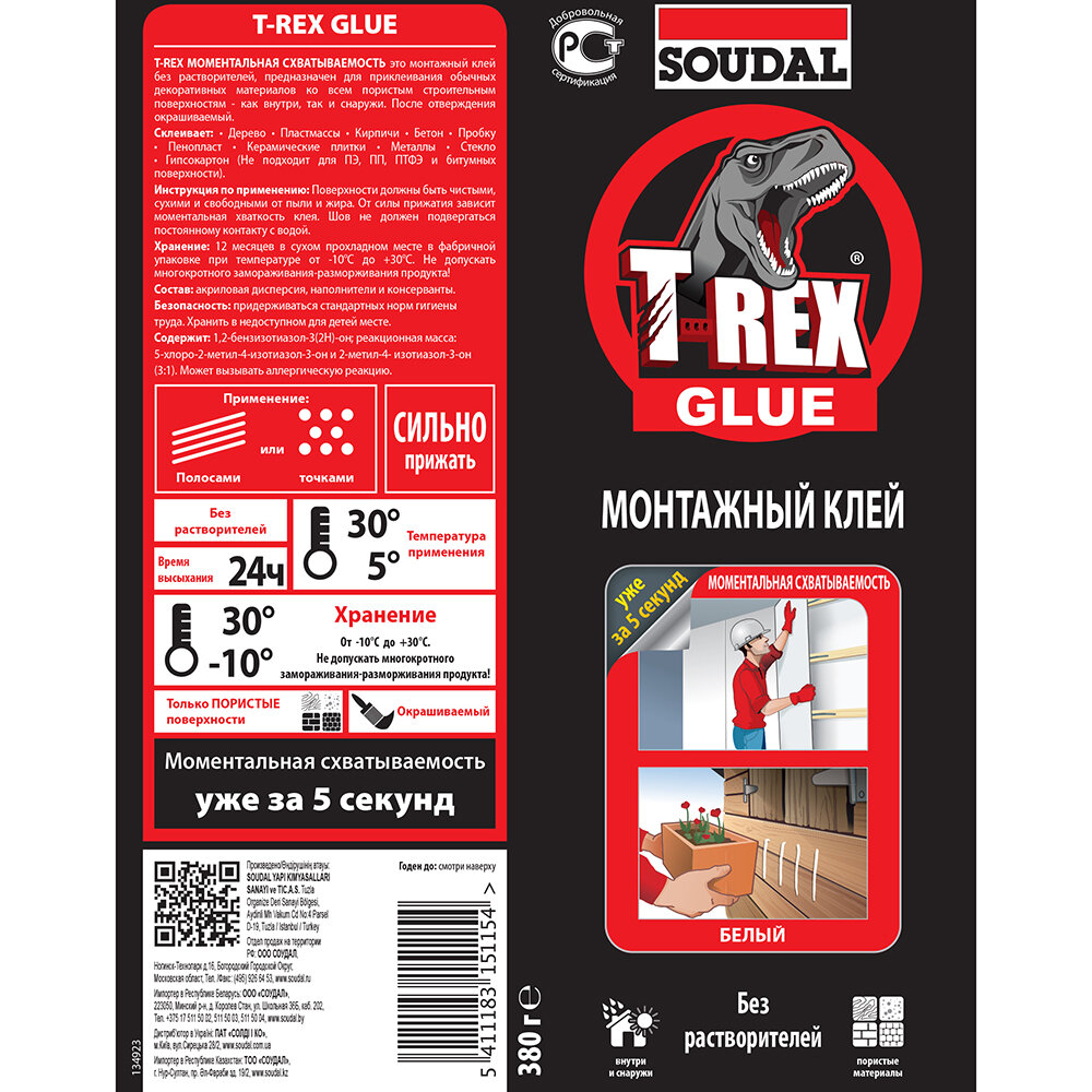 10 цен на SOUDAL T-REX Монтажный клей моментальная схватываемость 380г. Белый RED old 134923