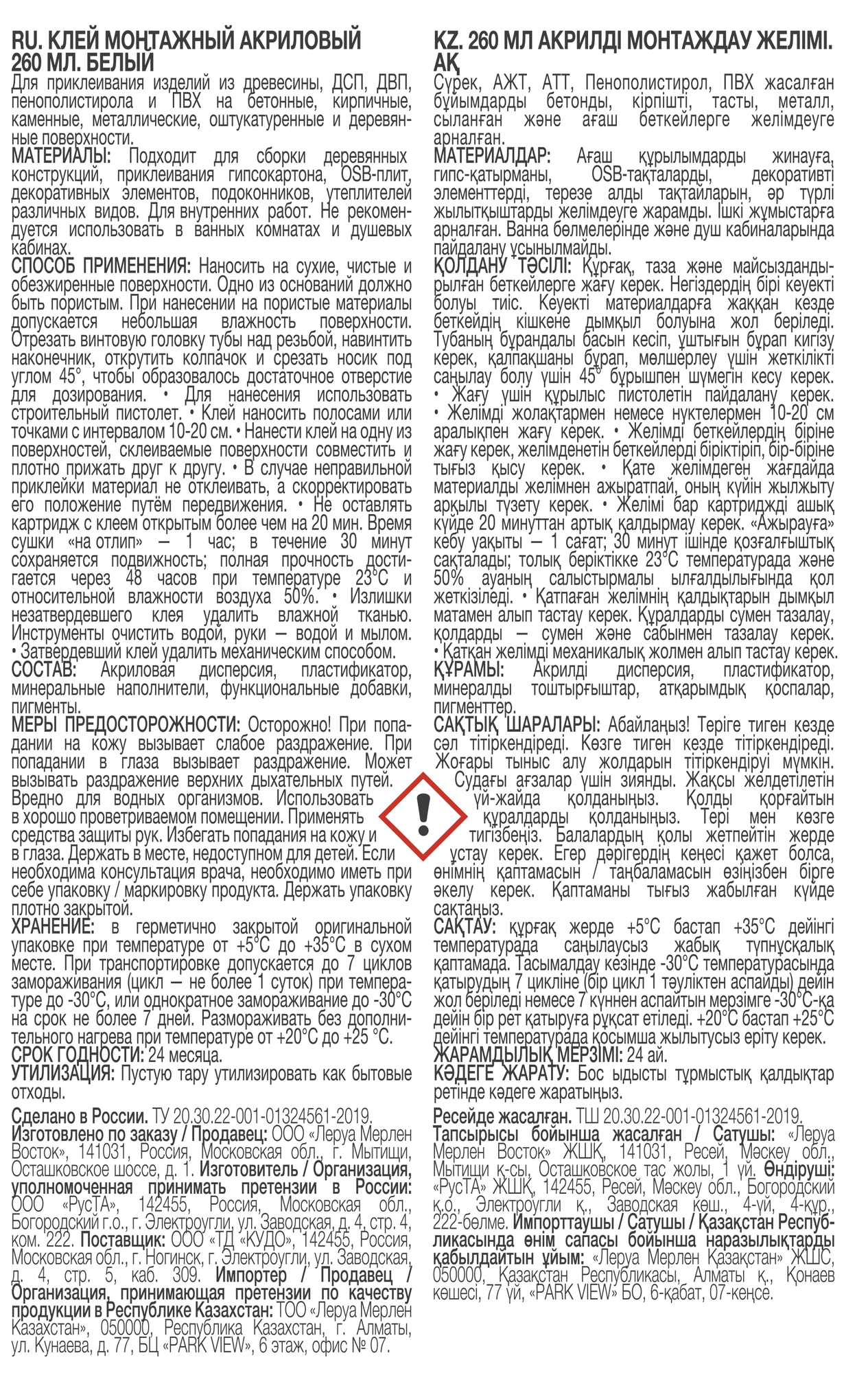 Клей монтажный акриловый ЛЦ 260 мл белый информация: