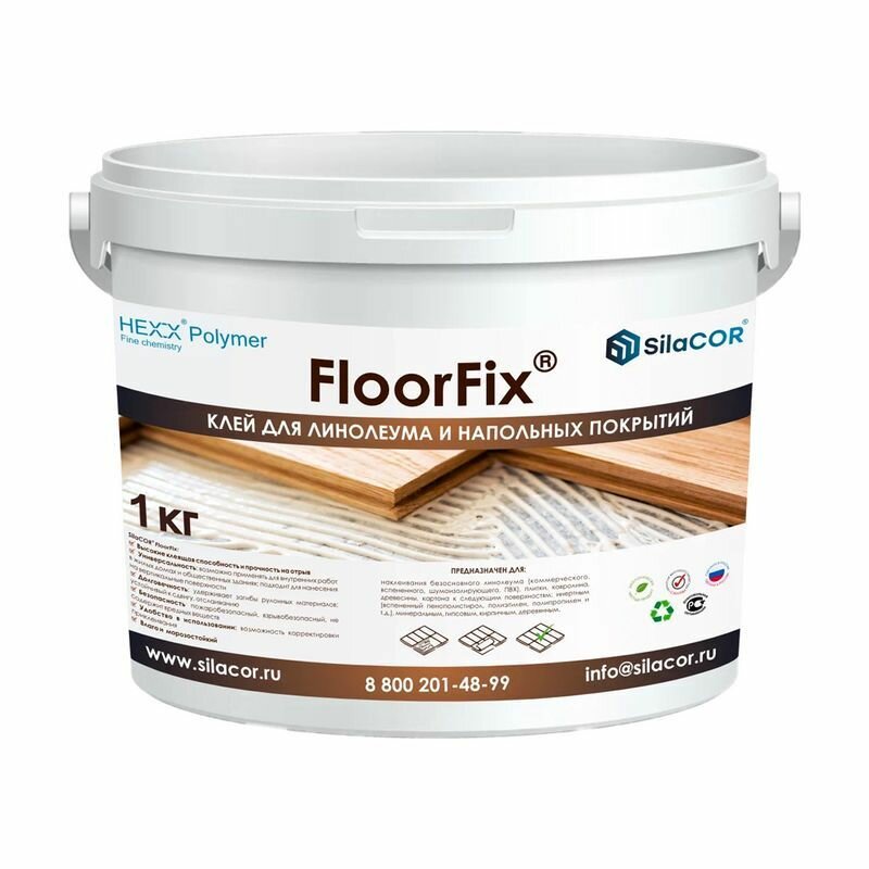 Клей для напольных покрытий SilaCOR Floor FIX, ведро п/э 1кг информация:
