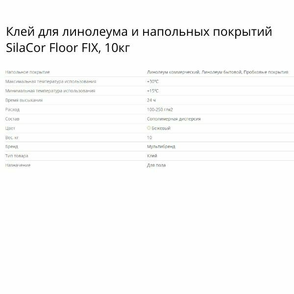10 цен на Клей для напольных покрытий SilaCOR Floor FIX, ведро п/э 10кг