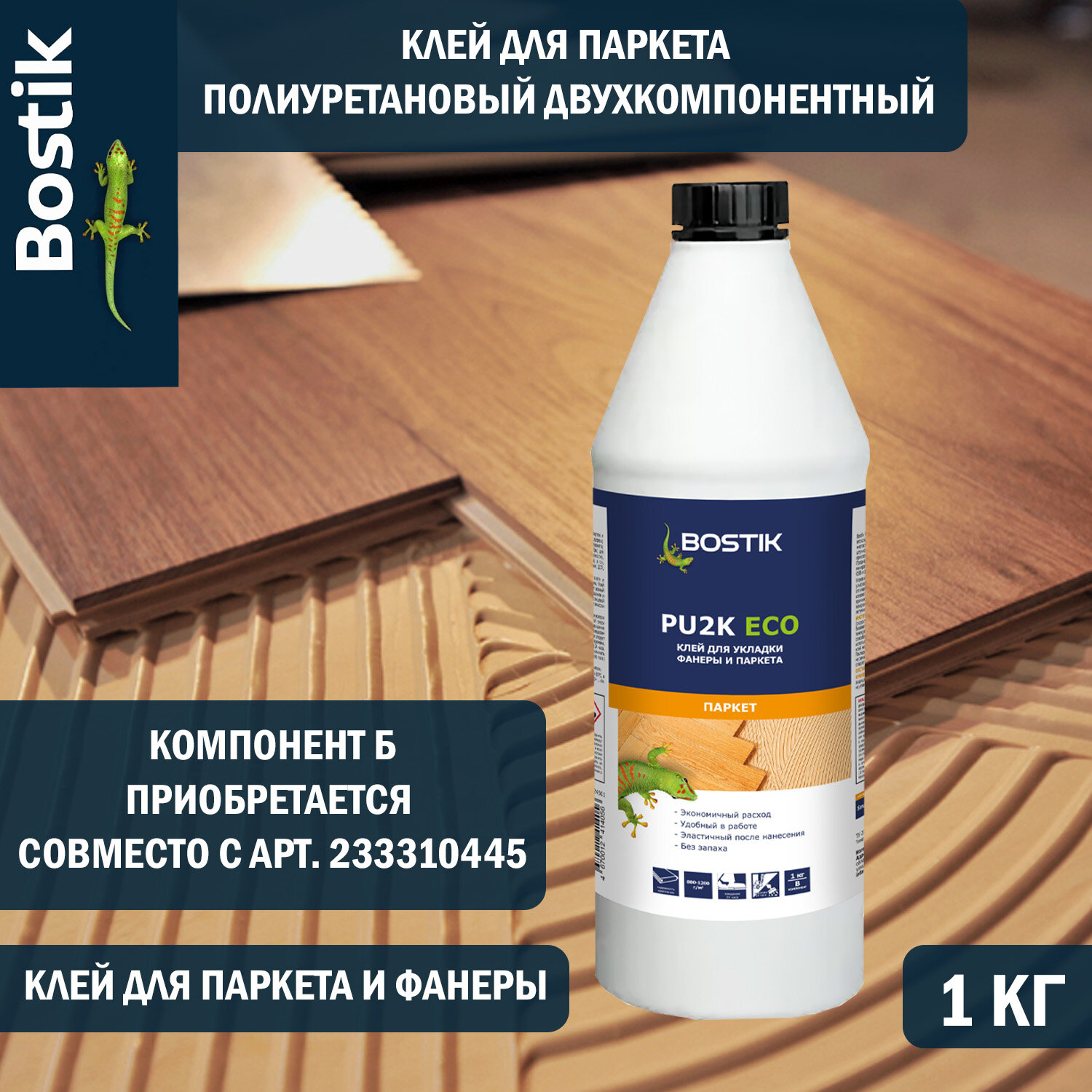 Бостик ПУ 2K ЭКО (компонент В) клей для паркета (1 кг) информация: