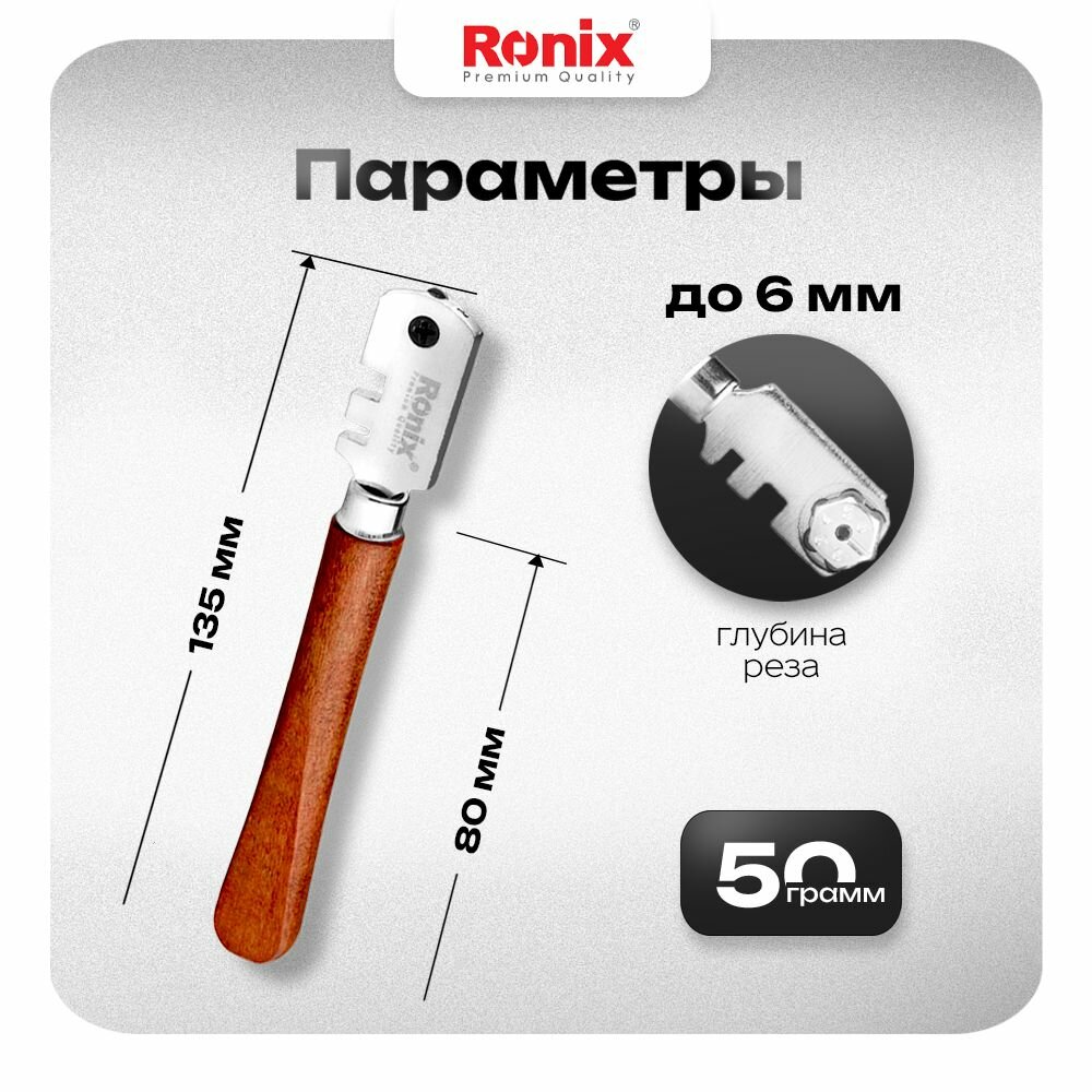 Отзывы на Стеклорез для стекла алмазный 6-роликовый RONIX глубина реза до 6 мм, рукоять из орехового дерева