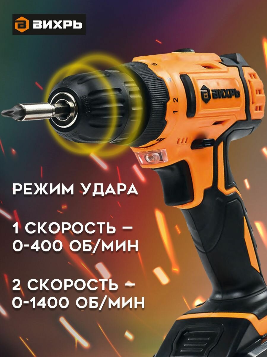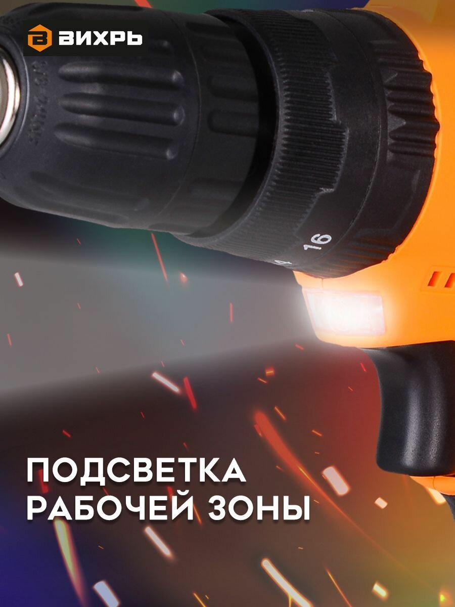 Дрель-шуруповерт Вихрь ДА-18Л-2кУ оранжевый 72/14/17