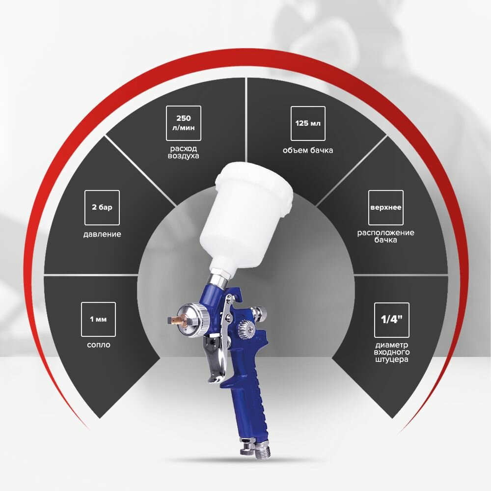 Отзывы на Краскопульт дюза 1,0 мм верх/б 0,125 л Н-2000 система HVLP Remix