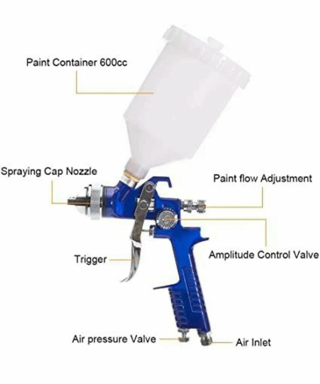 Отзывы на Краскопульт пневматический с регулятором давления и с 3-мя дюзами: 1.4 мм, 1.7мм, 2.0мм