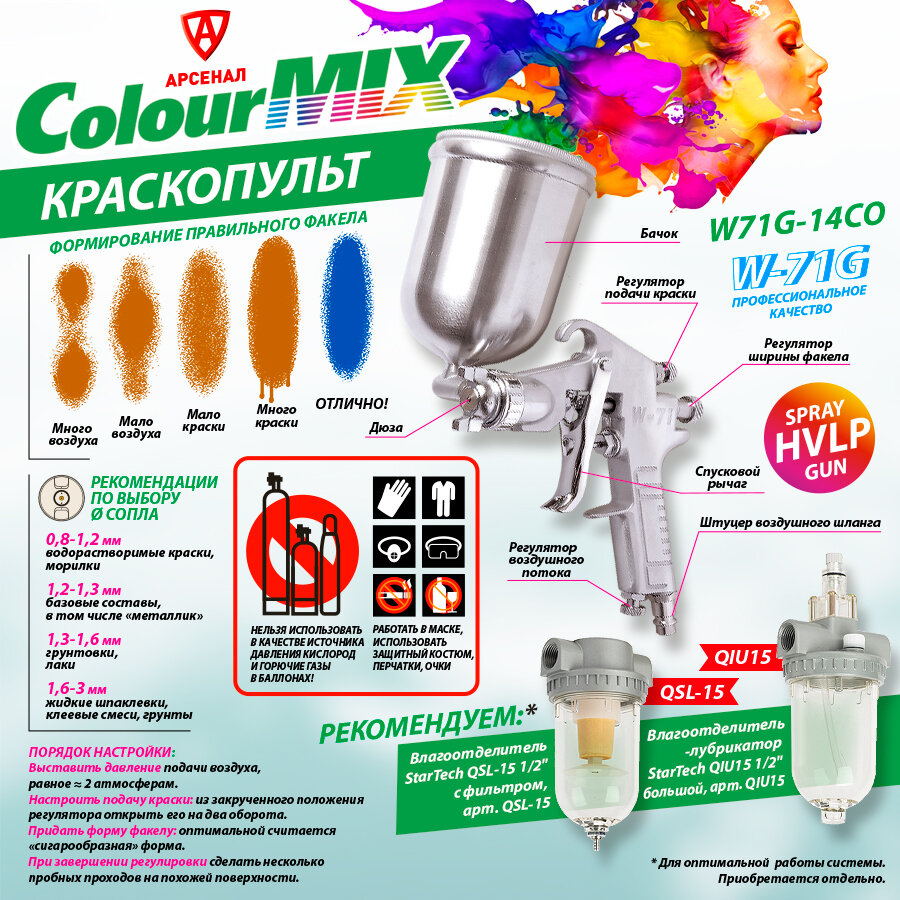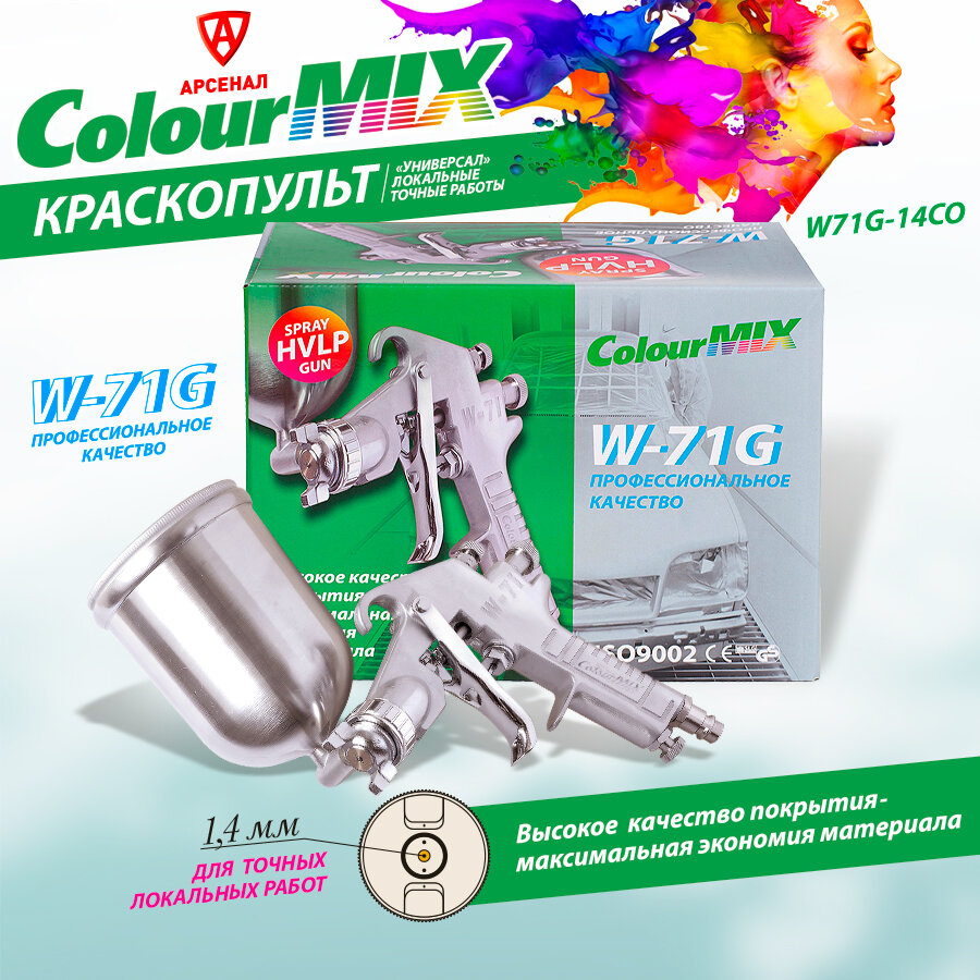 Краскопульт пневматический с верхним (боковым) алюминиевым бачком 400мл., сопло 1,4 COLOUR MIX, W71G-14СO информация: