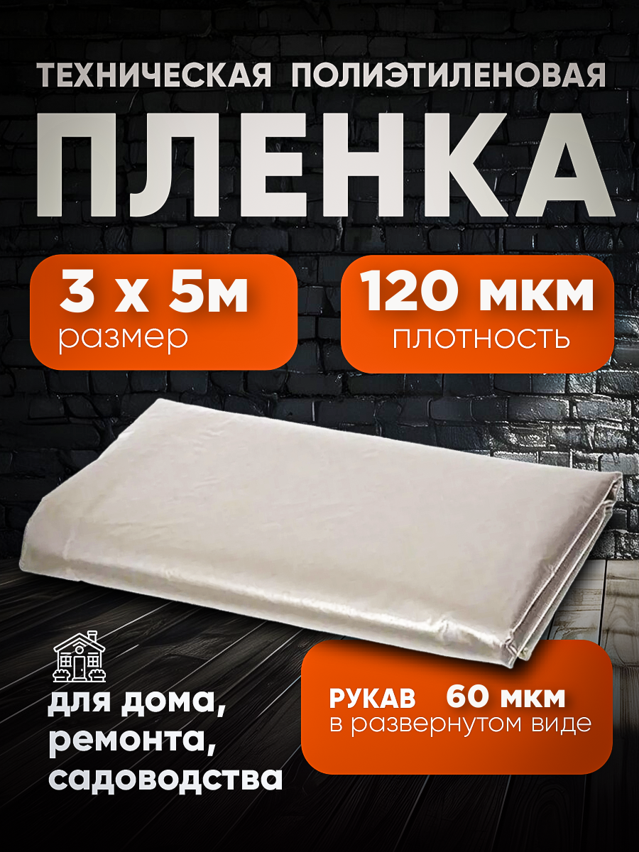 Техническая пленка полиэтиленовая 3х5м 120 мкм для дома, для ремонта, для садоводства информация: