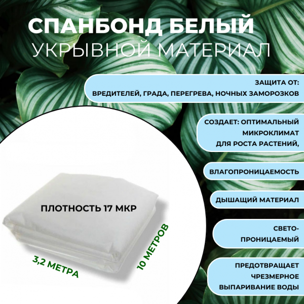 10 цен на Кзнм ООО Укрывной материал Спанбонд 17 мкр. белый, длина 10, ширина 3,2, СУФ, полипропилен