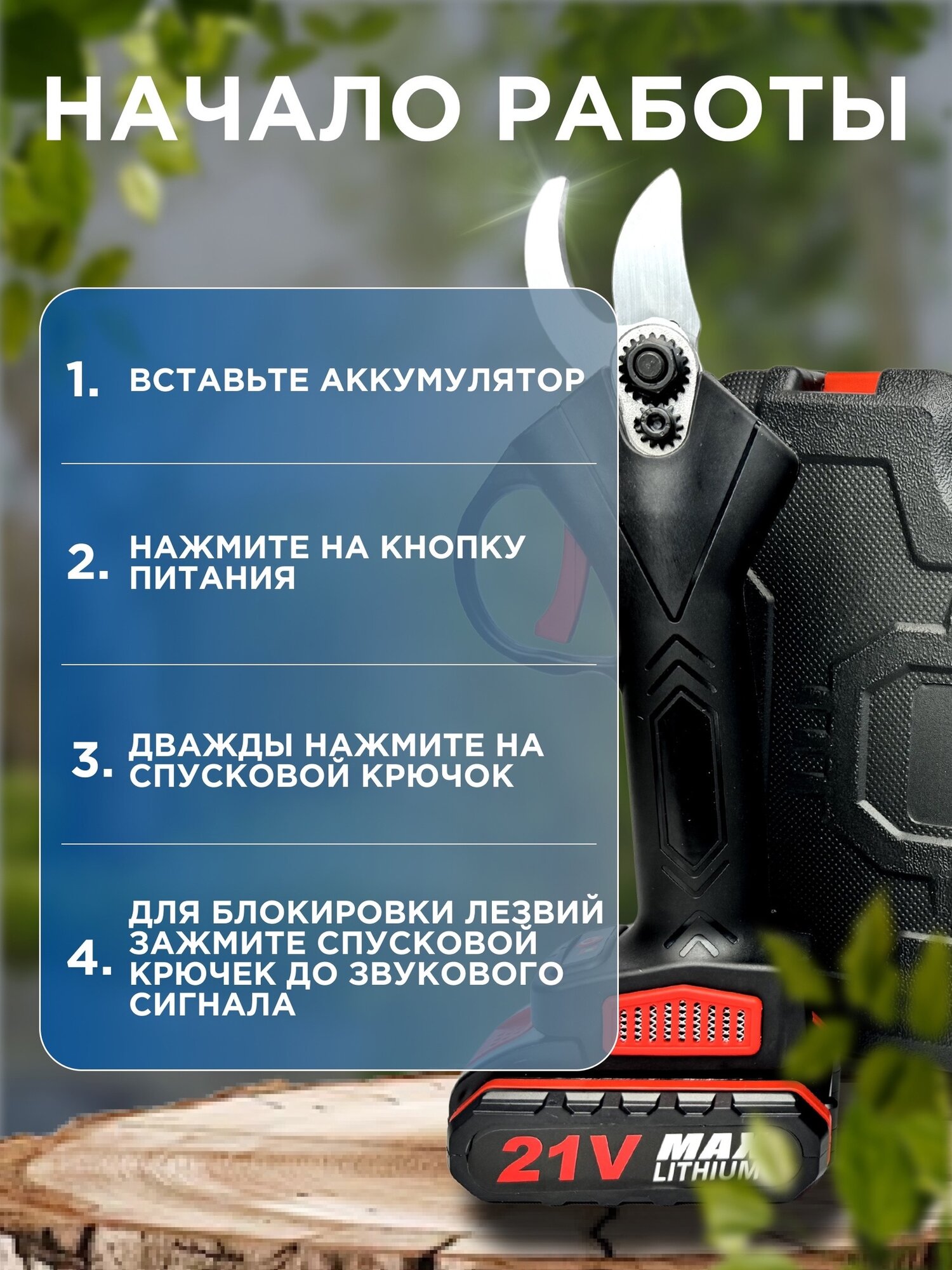 Секатор аккумуляторный садовый с 2 аккумуляторами информация: