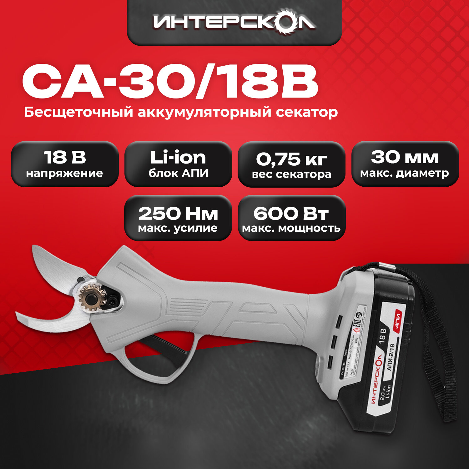 Бесщеточный аккумуляторный секатор Интерскол СА-30/18В картон, без аккумулятора и ЗУ