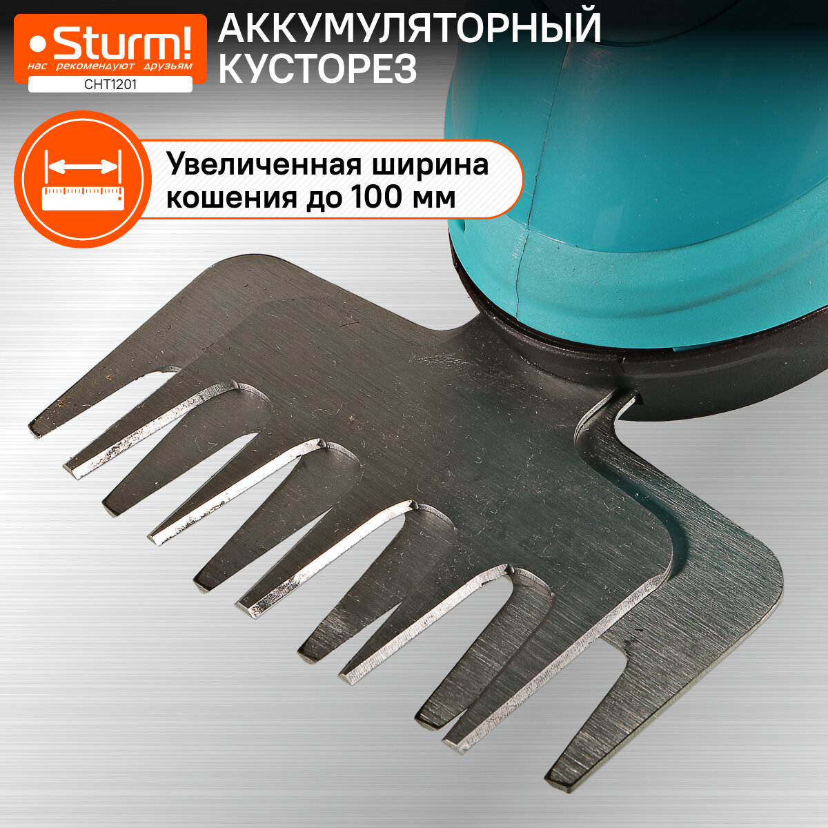 CHT3601 Аккумуляторный кусторез Sturm!, 7,2 В, 1,5 Ач, рез 120 мм, рукоятка-удлинитель, колеса Sturm!