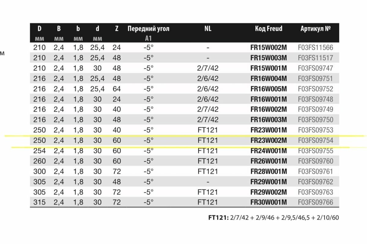 Отзывы на Freud Пила дисковая 250x2,4x1,8x30 Z60 A=-5, ATB, Miter Wood FR23W002M