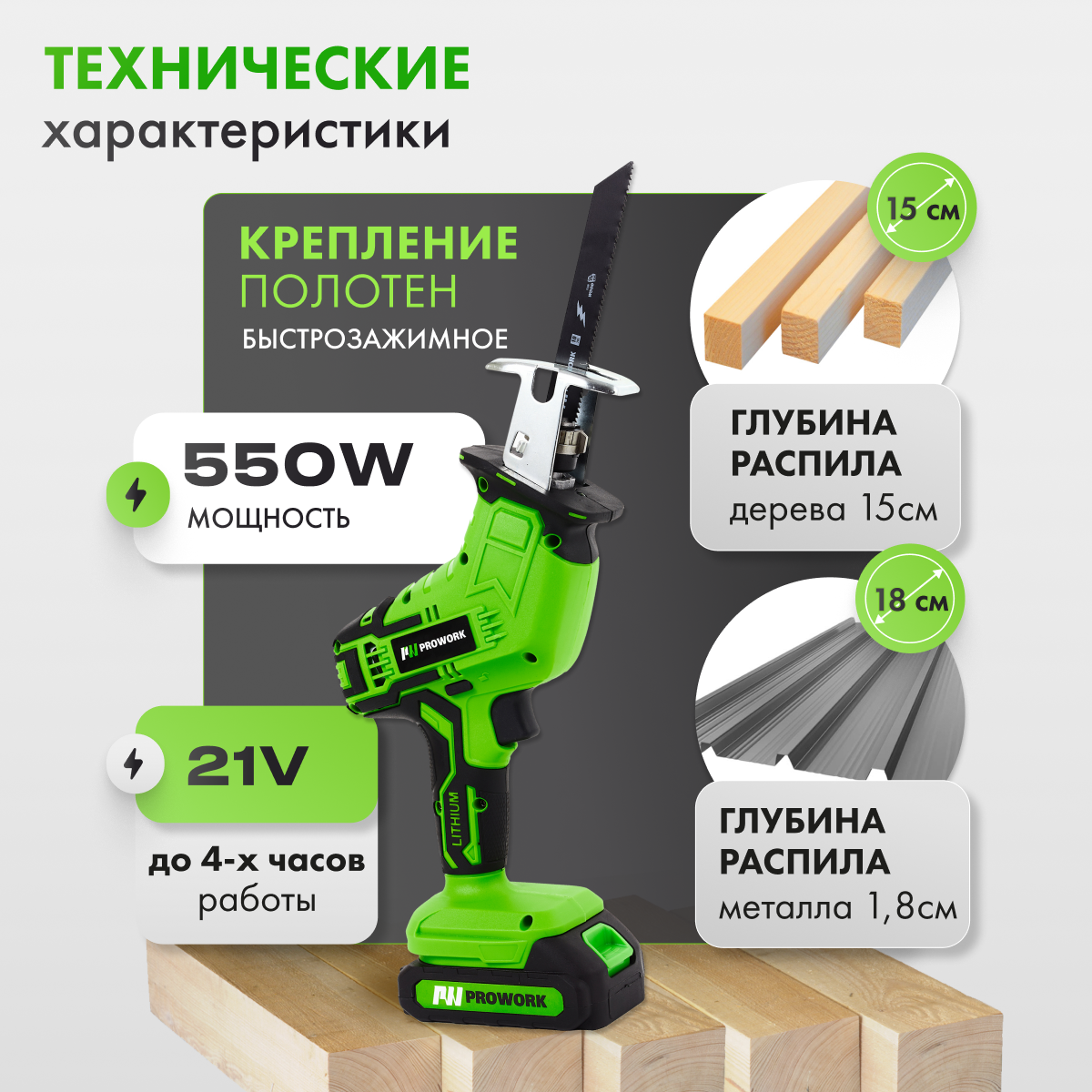Сабельная пила аккумуляторная садовая электрическая PROWORK информация: