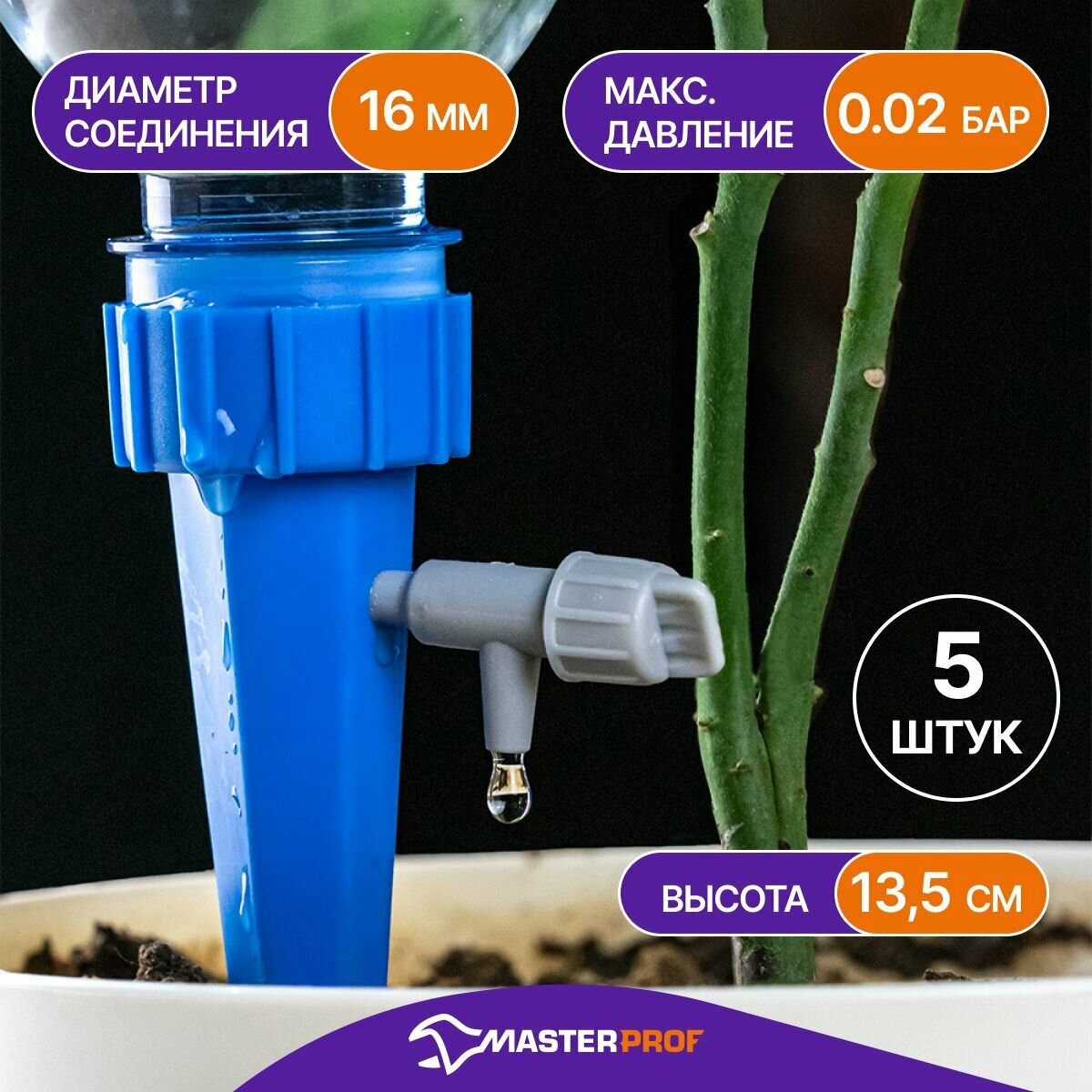 Конус капельного полива с краном для бутылки, 13,5 см, 5 шт. информация: