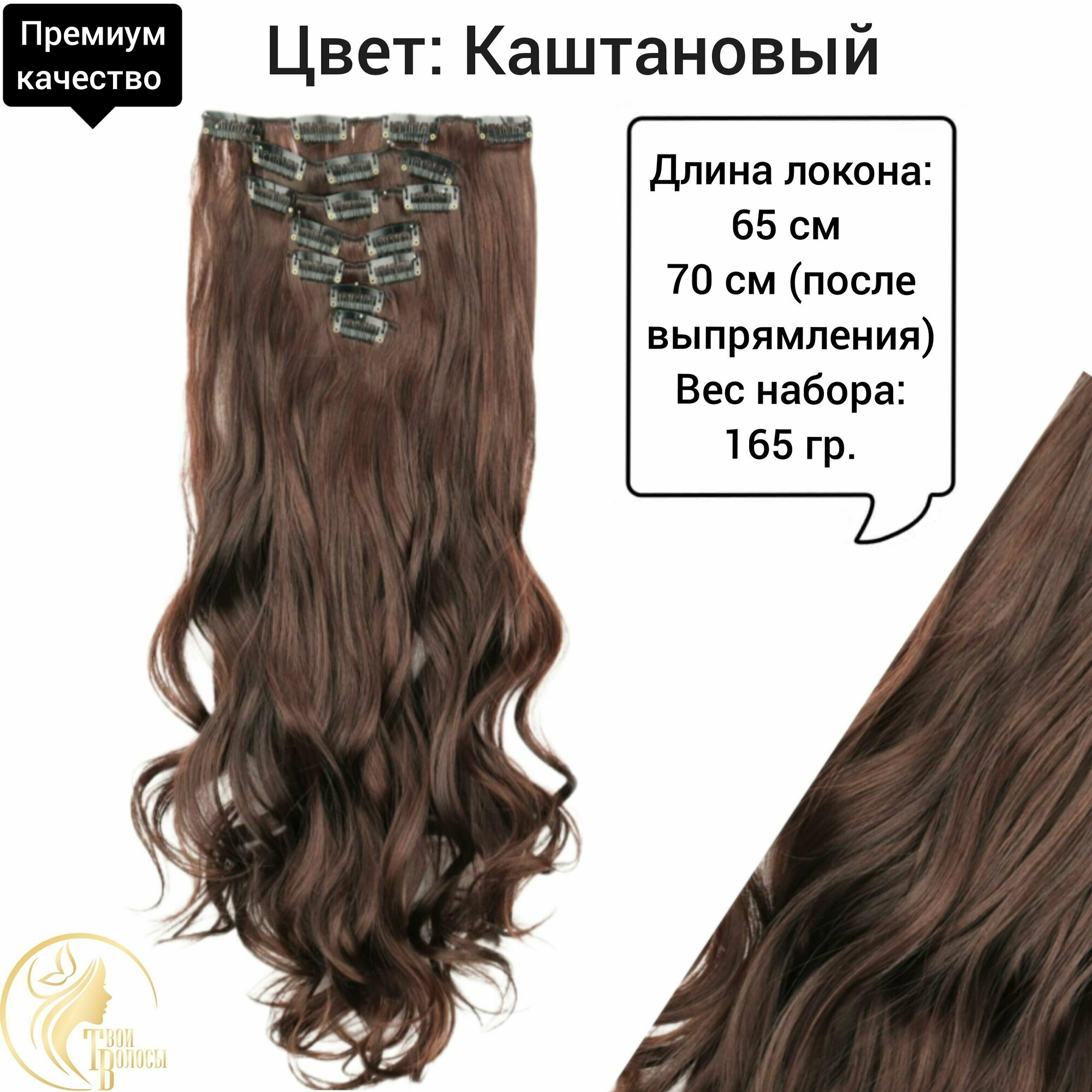 Накладные волосы локонами 65 см, пряди на заколках-клипсах, Каштановый (тон 2/33) информация: