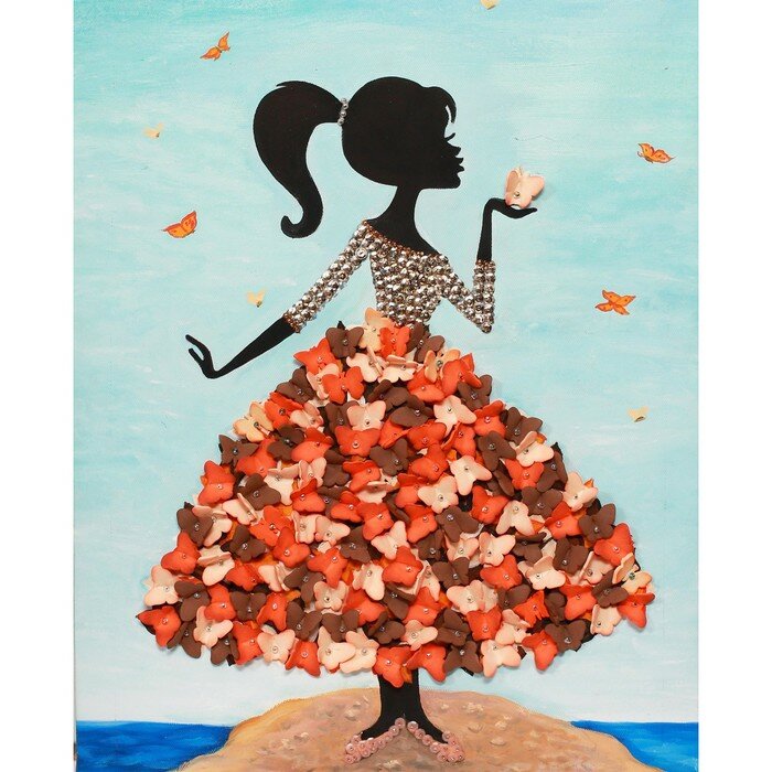 10 цен на Мозаика из пайеток на холсте «Девочка с бабочками»