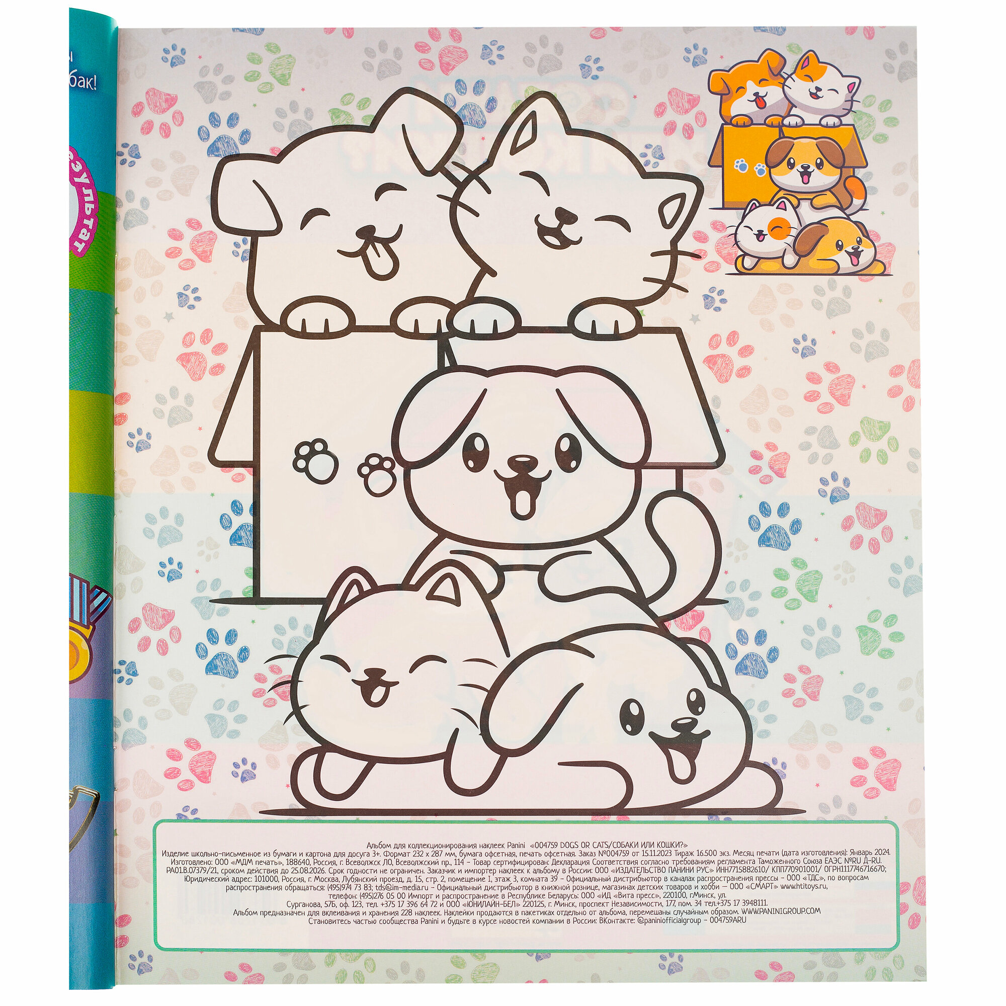 Альбом "Кошки или собаки" от бренда "Panini" информация:
